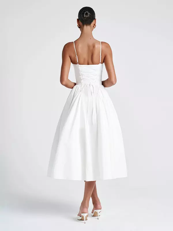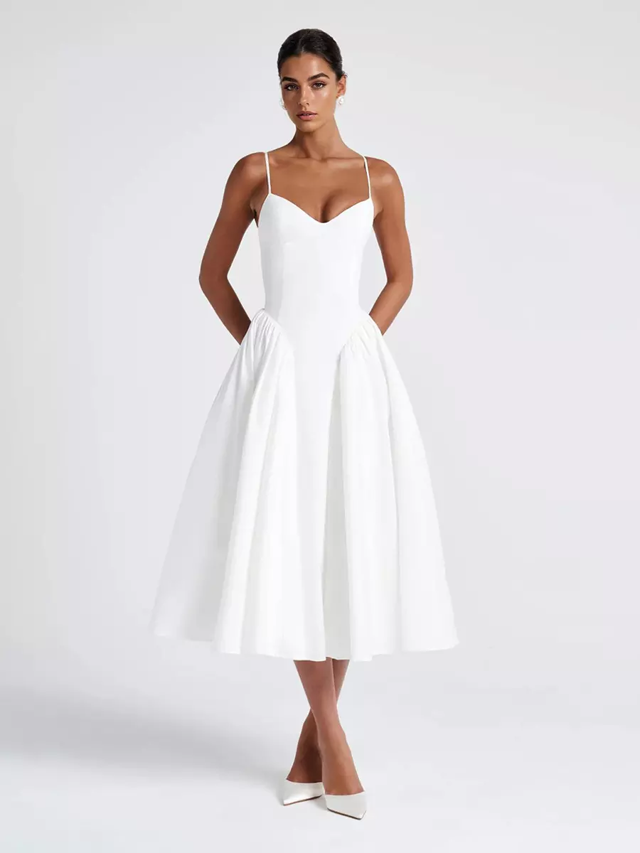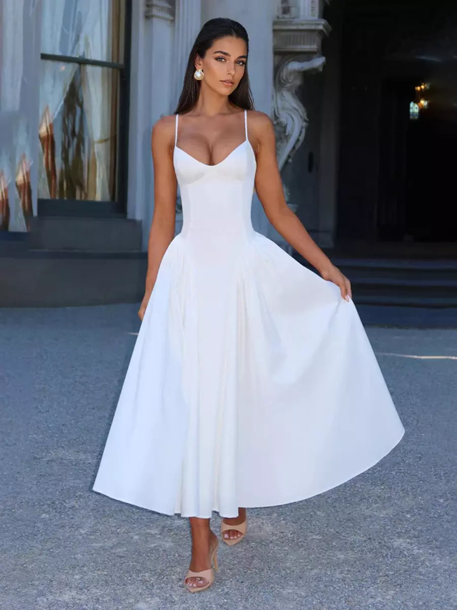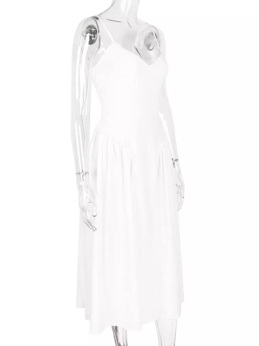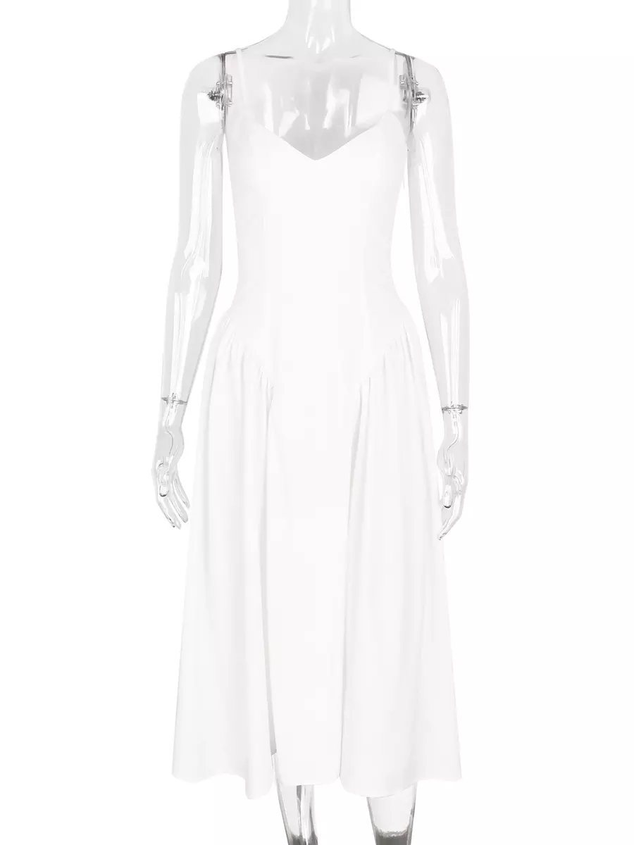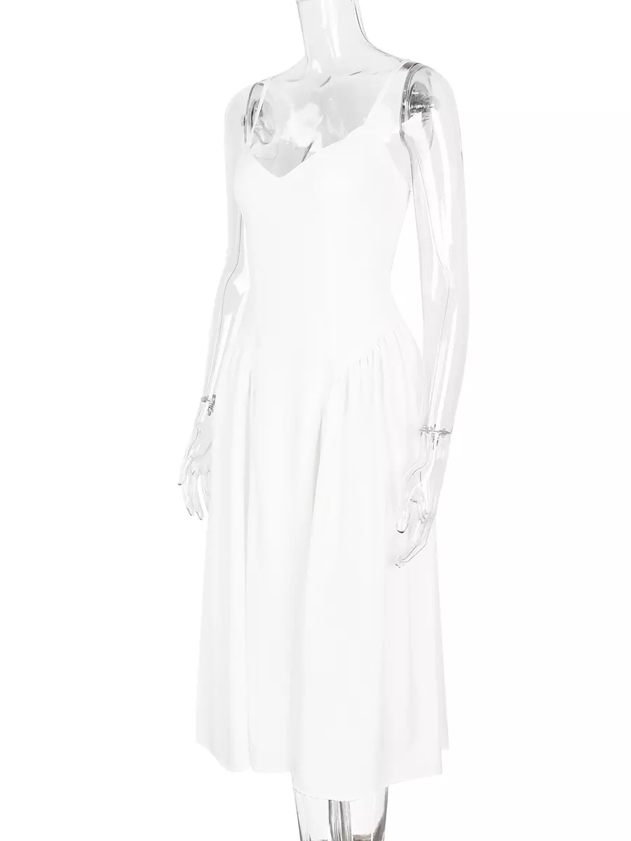 Be the first to review “Elegant Sleeveless Princess Waistline V-Neck Pleated Backless Long Slip Maxi Dress”