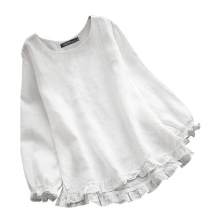 Be the first to review “Elegant Solid Loose Ruffle Bottom Cuffs Crew Neck Long Sleeve Shirt”
