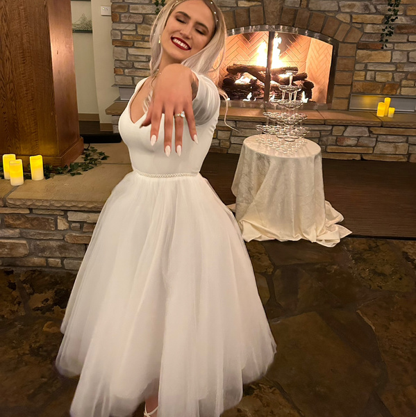 • Hemline/Train : Tea-Length