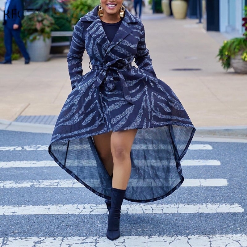 Elegant Zebra Stripes Notched Collar Asymmetrical Maxi Dress