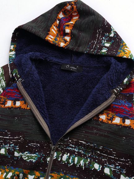 Ethnic Print Hoodded Coat