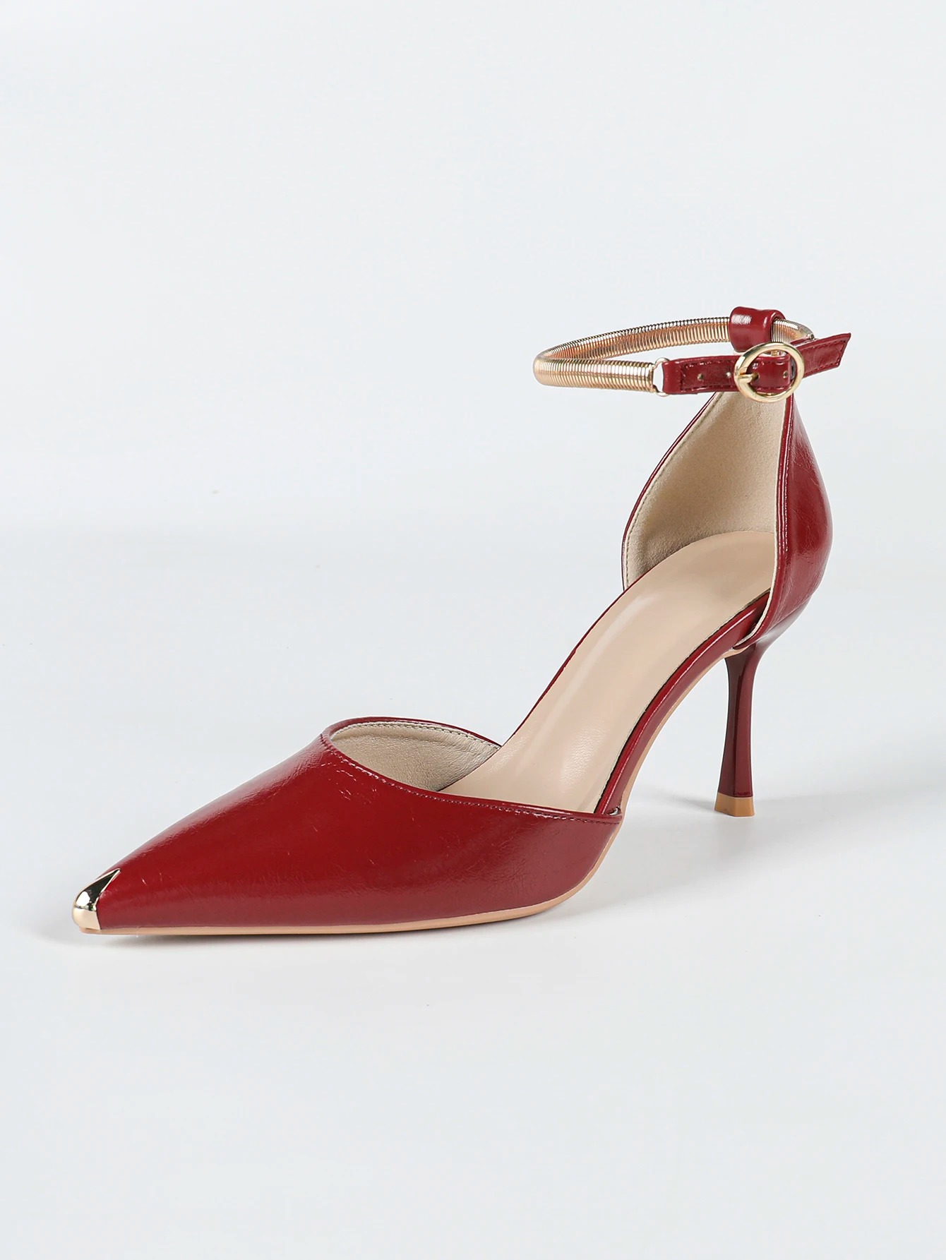 Fairy Style Metal Toe Caps Ankle Straps Hollow Stiletto Heels Pumps