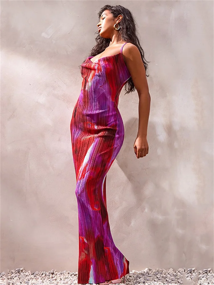 Spaghetti Strap Slim High  Waist Swing Collar Elegant Party Maxi Dresses