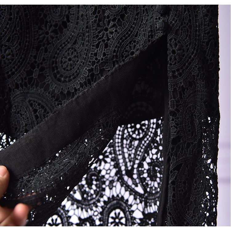 Fashion Designer Sexy Hollow Out Embroidery Split Skirt
