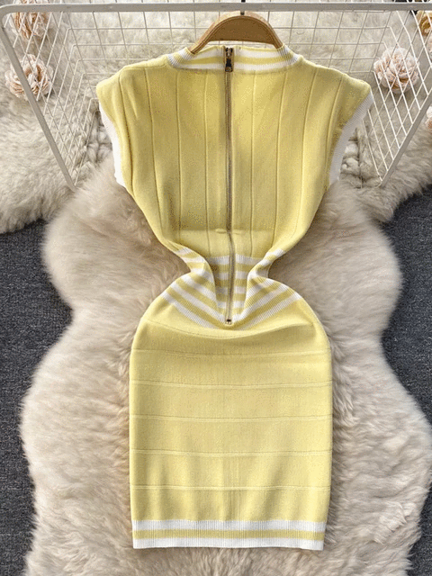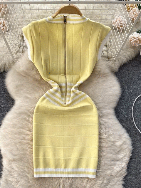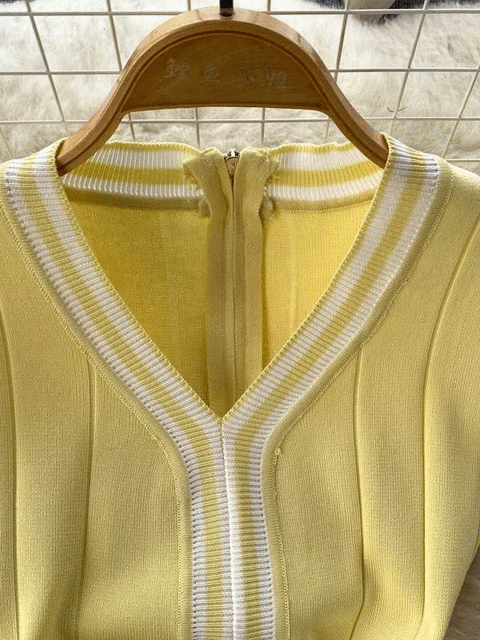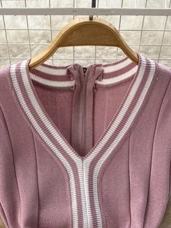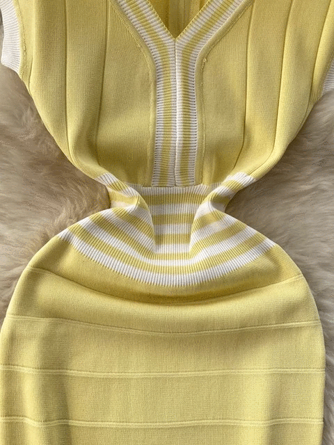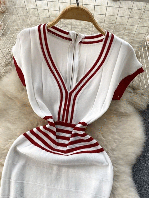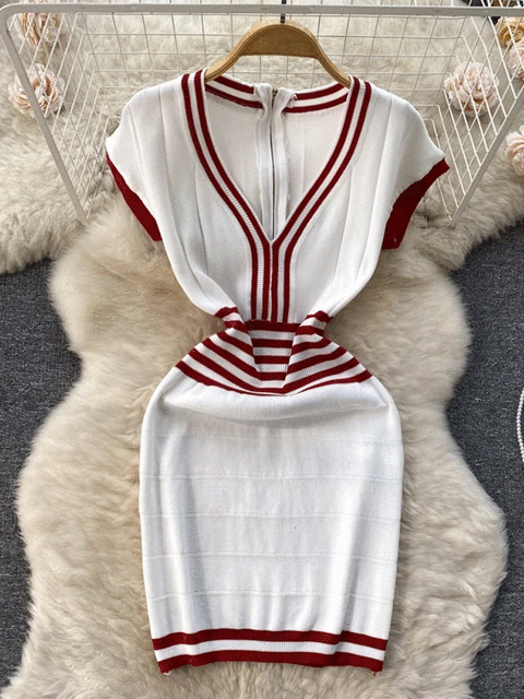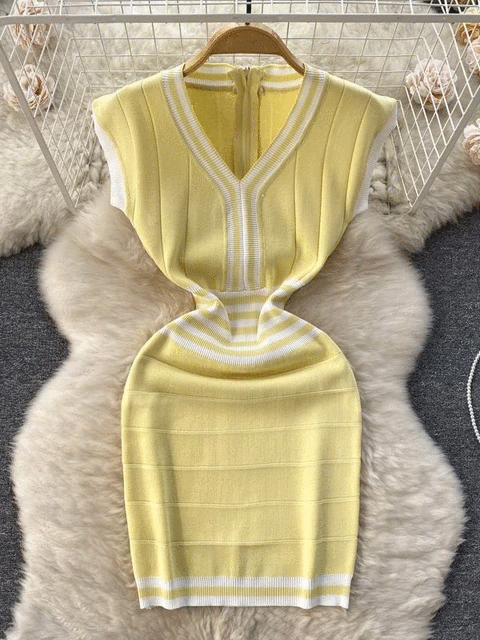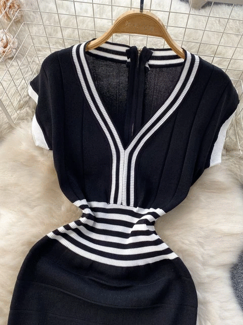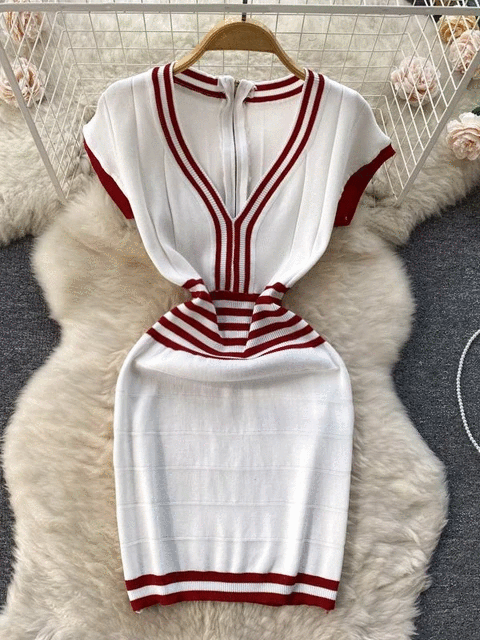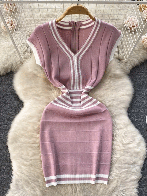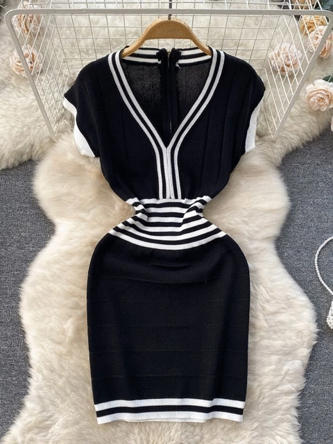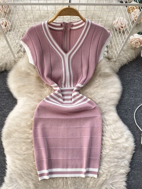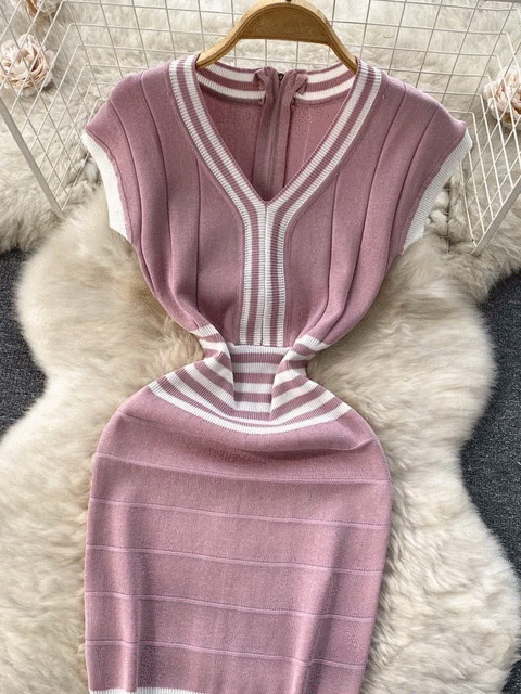 Fashion Lady Knitting V-neck Party Dress