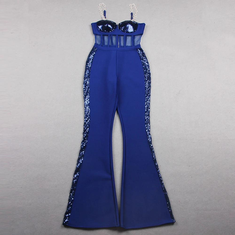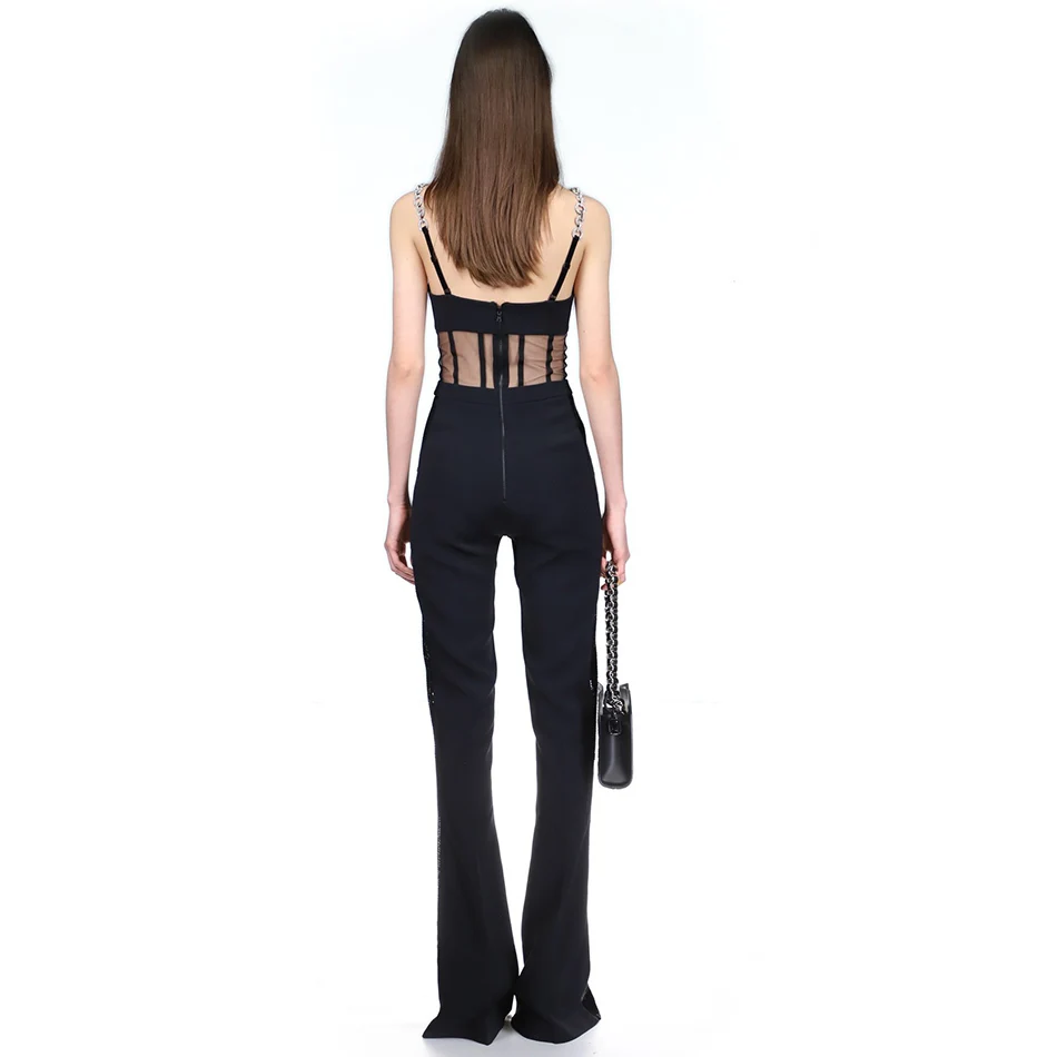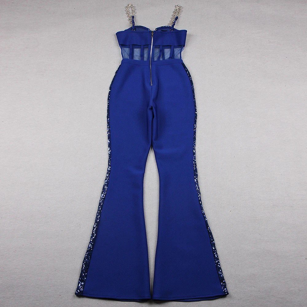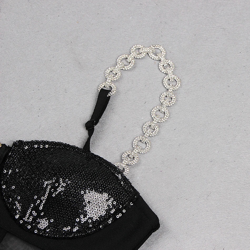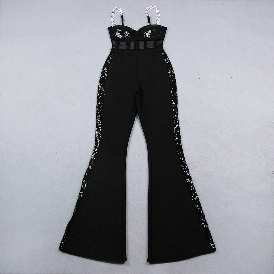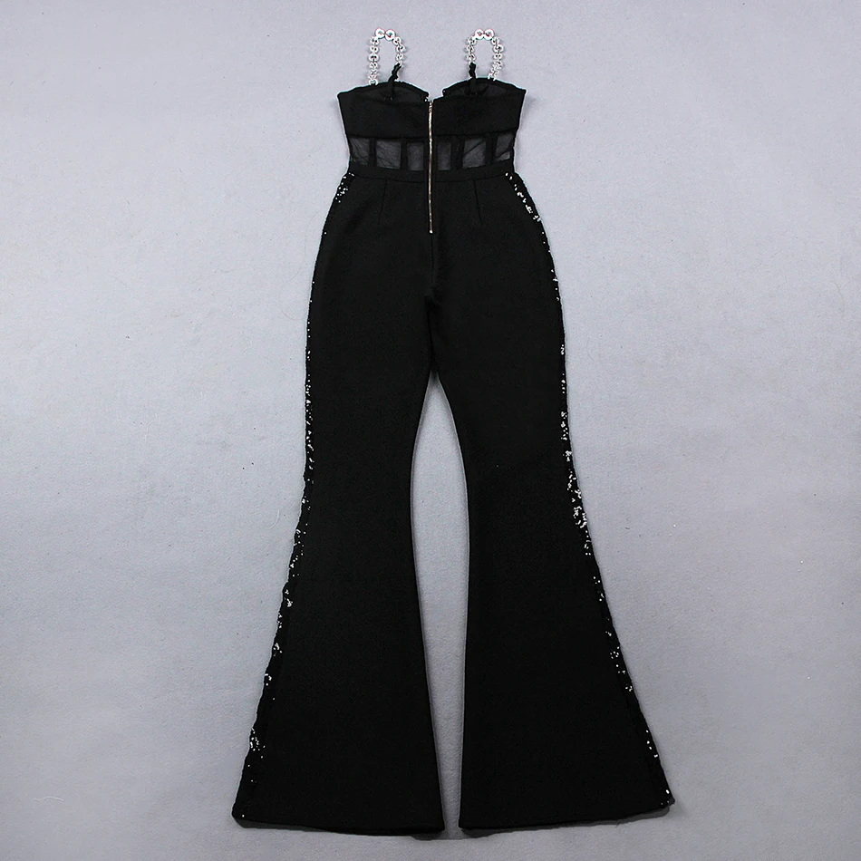 Fashion Rhinestone Sling Sequin Patchwork Bodycon Bandage Dress Designer Sleeveless Club Party Jumpsuit