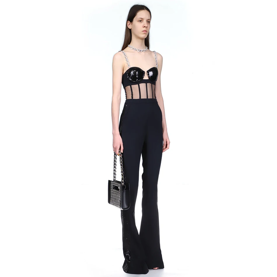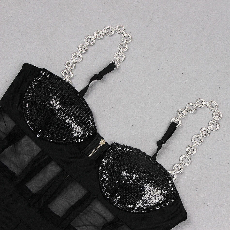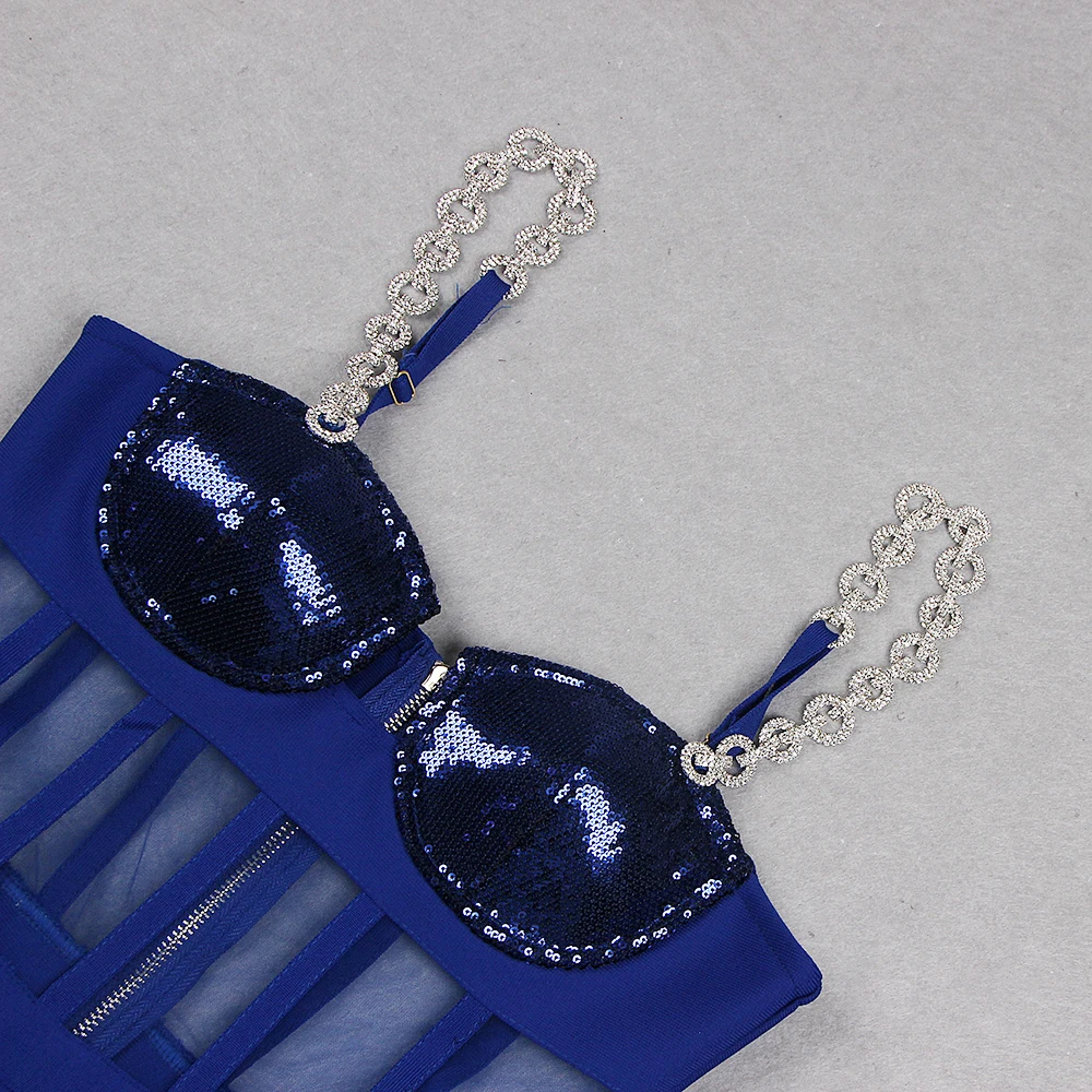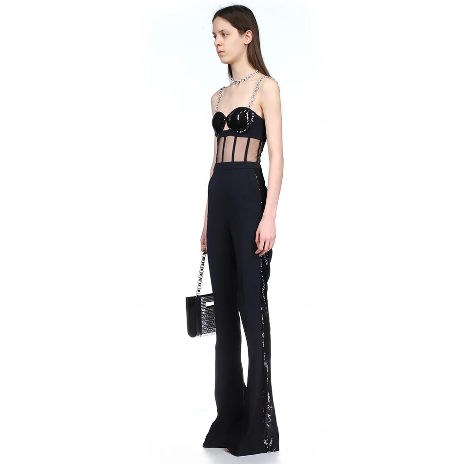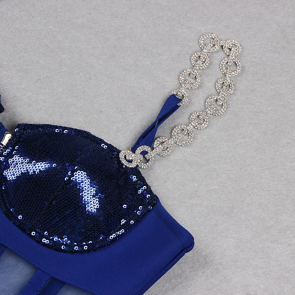 Fashion Rhinestone Sling Sequin Patchwork Bodycon Bandage Dress Designer Sleeveless Club Party Jumpsuit