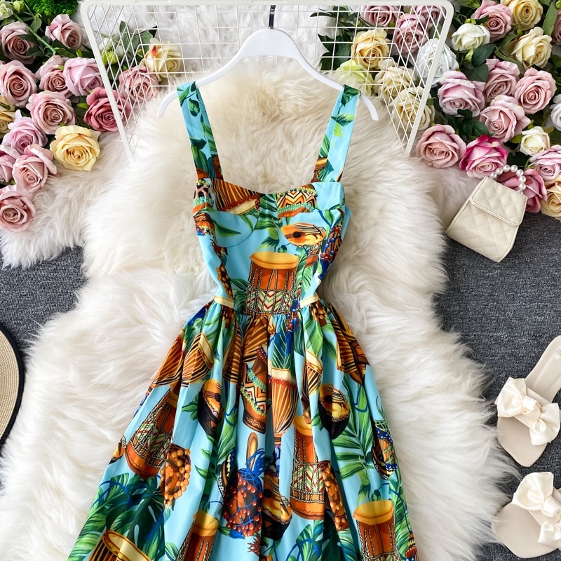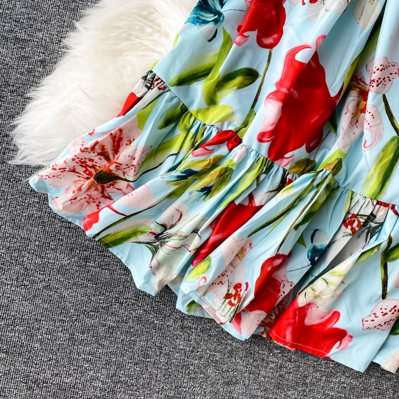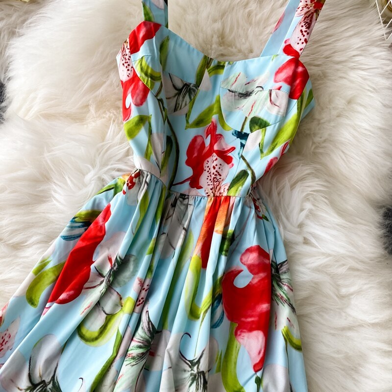 Be the first to review “Fashion Runway Floral Print Vacation Dress Sleeveless Tank Boho Beach Elegant Party Pleated vestido longo”