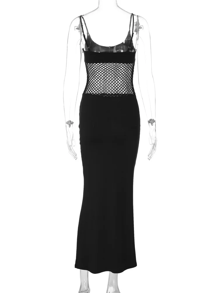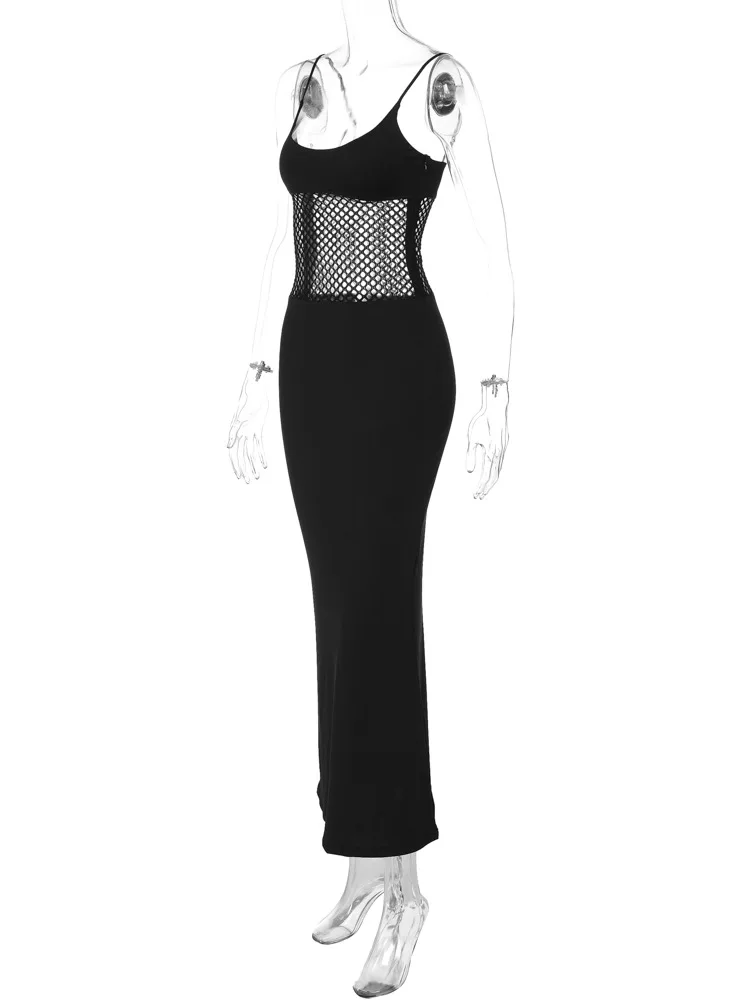 Fishnet Detail Maxi Dress Club Party Elegant Outfits for Mesh Splice Slip Dresses