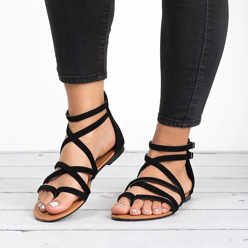 Gladiator Flat Sandals Cover Heel Rome Sandals Zipper Narrow Criss Crossed Straps