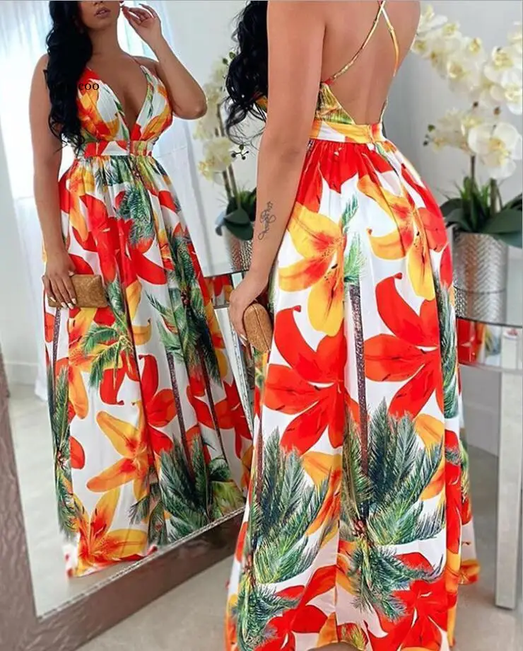 Floral Print Long Elegant Casual Beach Party Maxi Dresses