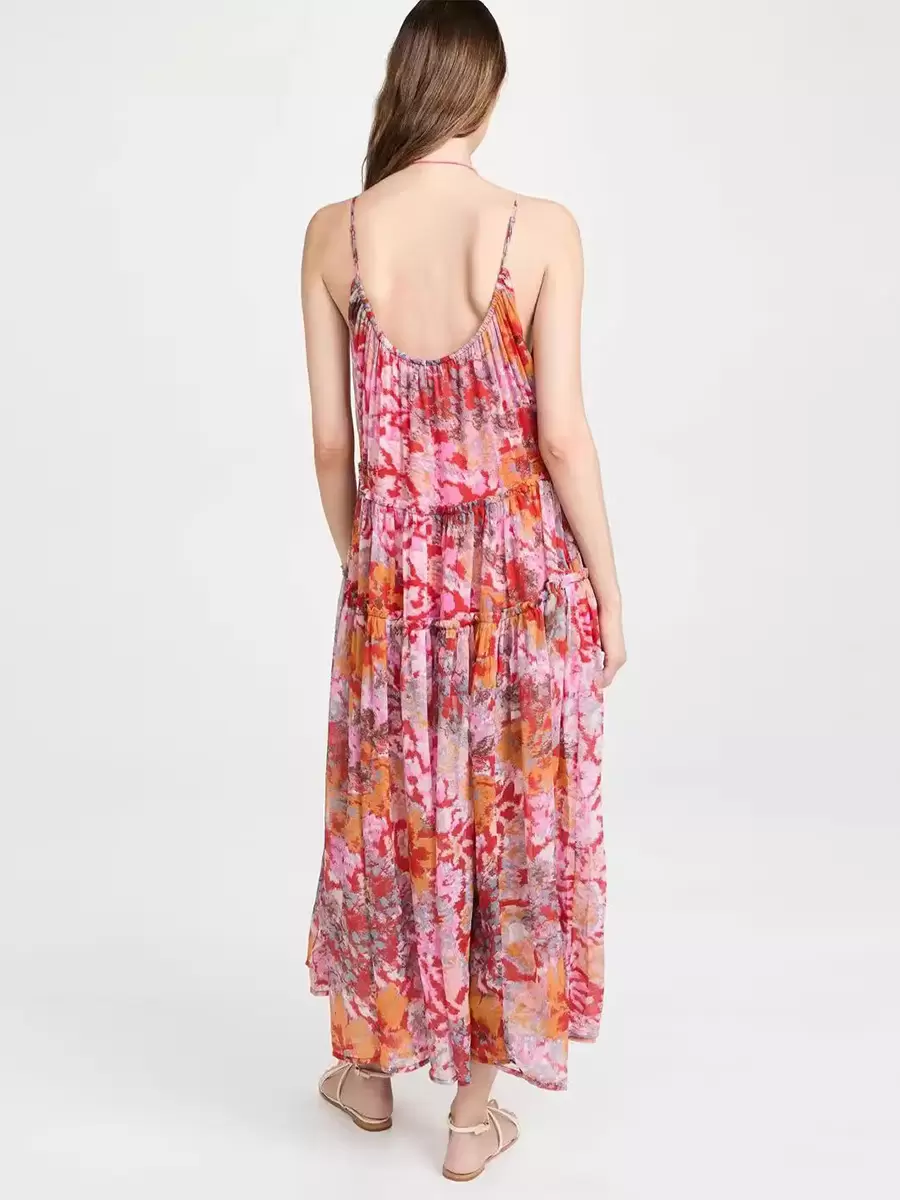Floral Dress Maxi Dresses Dresses Floral Print Spaghetti Straps Oversized Straps Neck Sleeveless Elegant