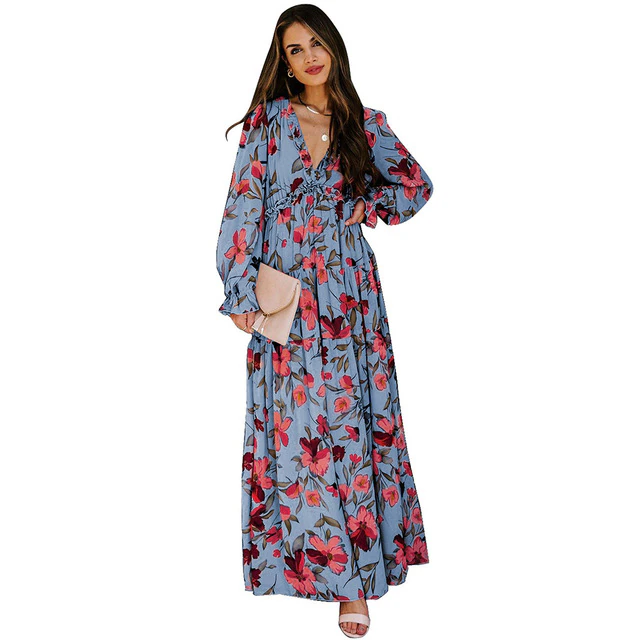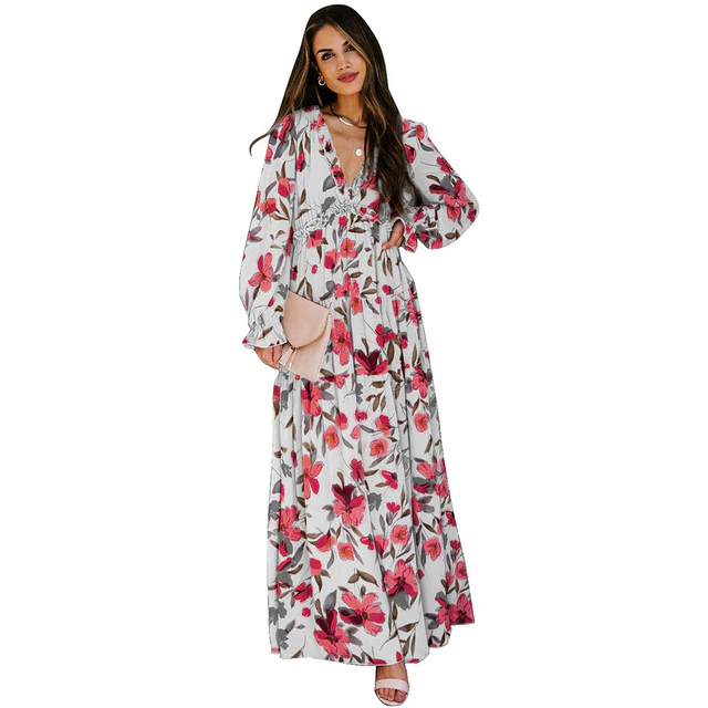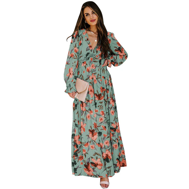 Be the first to review “Elegant Floral Print Dress Spring Summer Casual Maxi Dress”