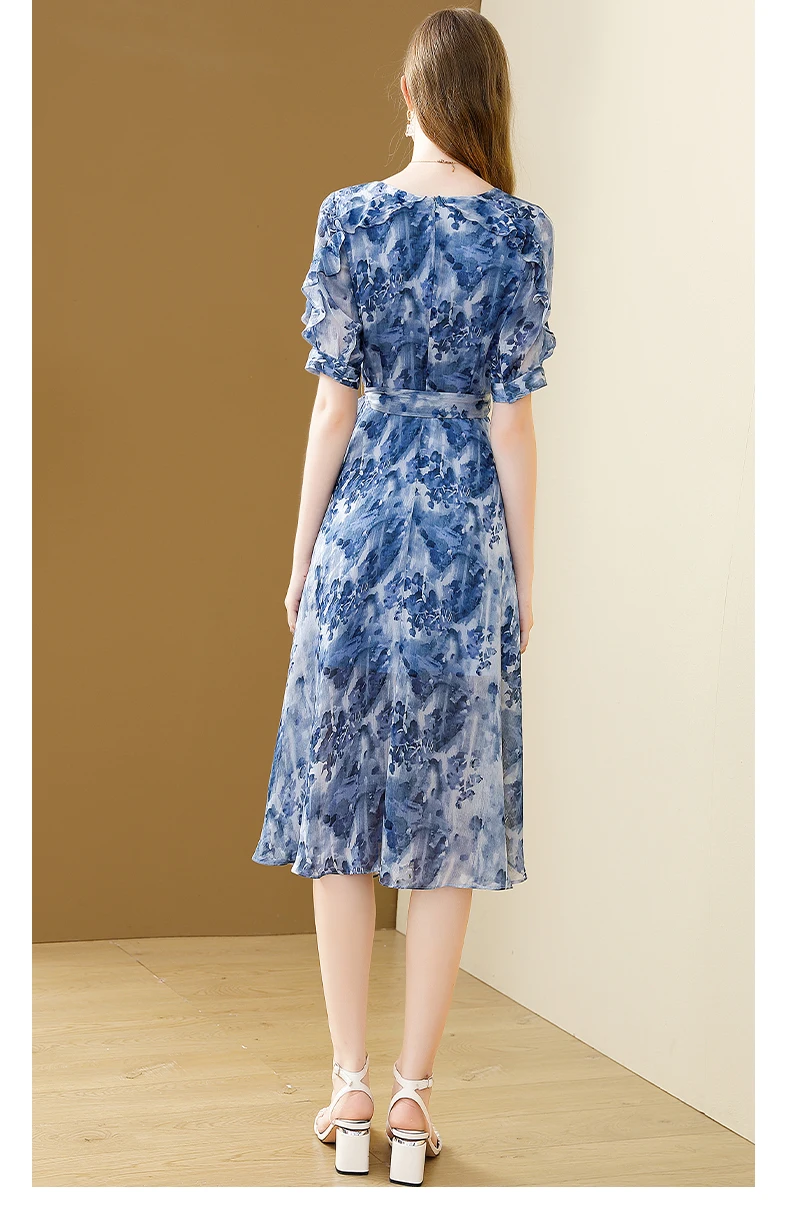 Be the first to review “Floral Printing Chiffon Dress V-Neck Elegant Office A-line Party Slim Dresses Vestido”