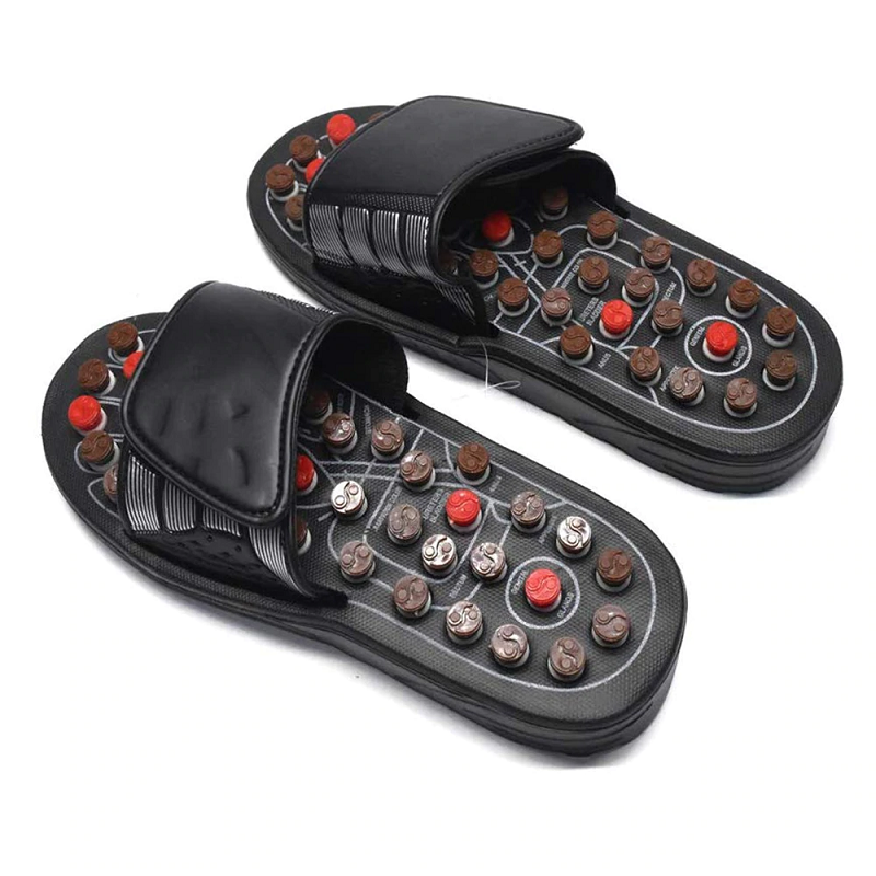 1.Adopt acupressure therapy can effectively promote blood flow to soothe your foot or heel pain and muscle tension due to arthritis, neuropathy, plantar fasciitis for enhanced health. 2.Flexible and rotatable massage columns are arranged scientifically to better stimulate and massage your acupuncture points. 3.Easy-to-wear slippers support to be worn barefoot directly to provide constant massaging experience when walking or standing. 4.Adjustable shoe upper design can widely suit different instep heights with perfect custom fit, four size variations are available for options.