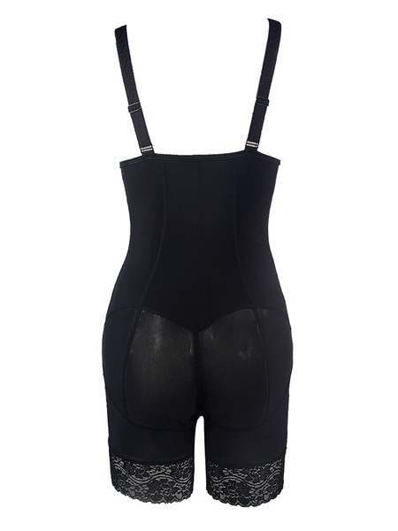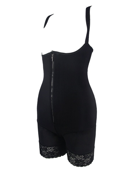 Full Body Shaper Straps Zip Front Shapewear With Lace Trim