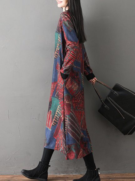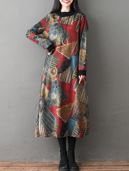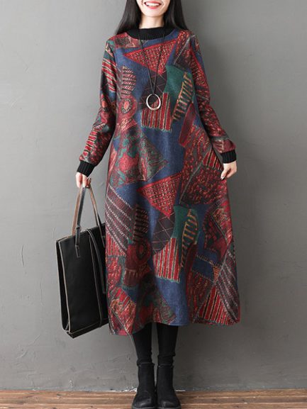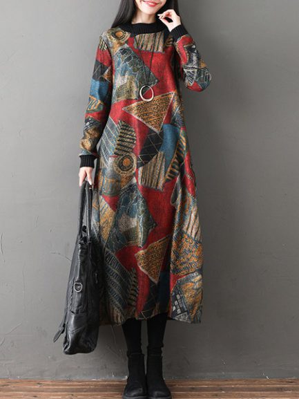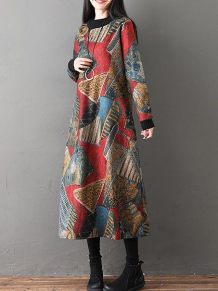 Be the first to review “Geometric Print Patchwork Vintage Dress”