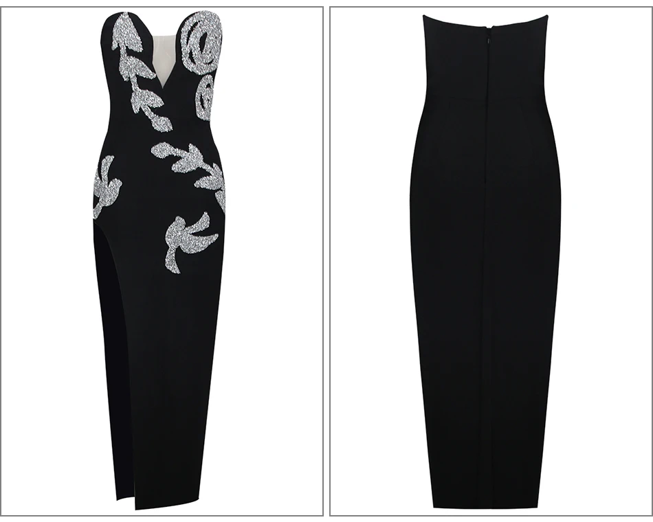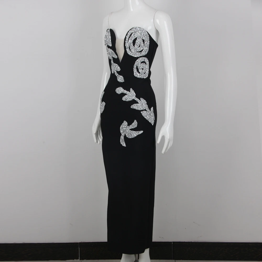 Glamorous V-Neck Bandage Dress – Sleek Sequined Maxi for Sophisticated Parties