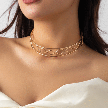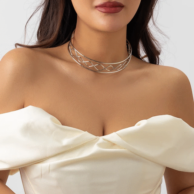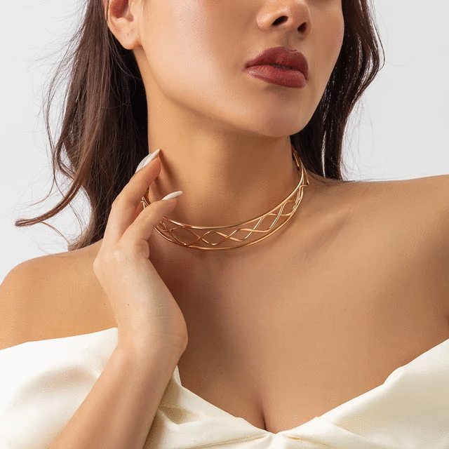 Goth Metal Torques Open Cuff Chain Necklace for Women