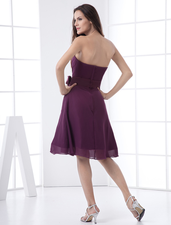 Grape Strapless Sash Satin Chiffon Summer Homecoming Bridesmaid Mini Dress