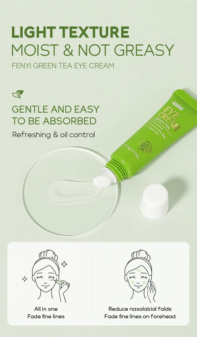 Green Tea Eye Cream Anti-Wrinkle Anti Puffiness Dark Circles Moisturizing Firming Brighten Skin Care