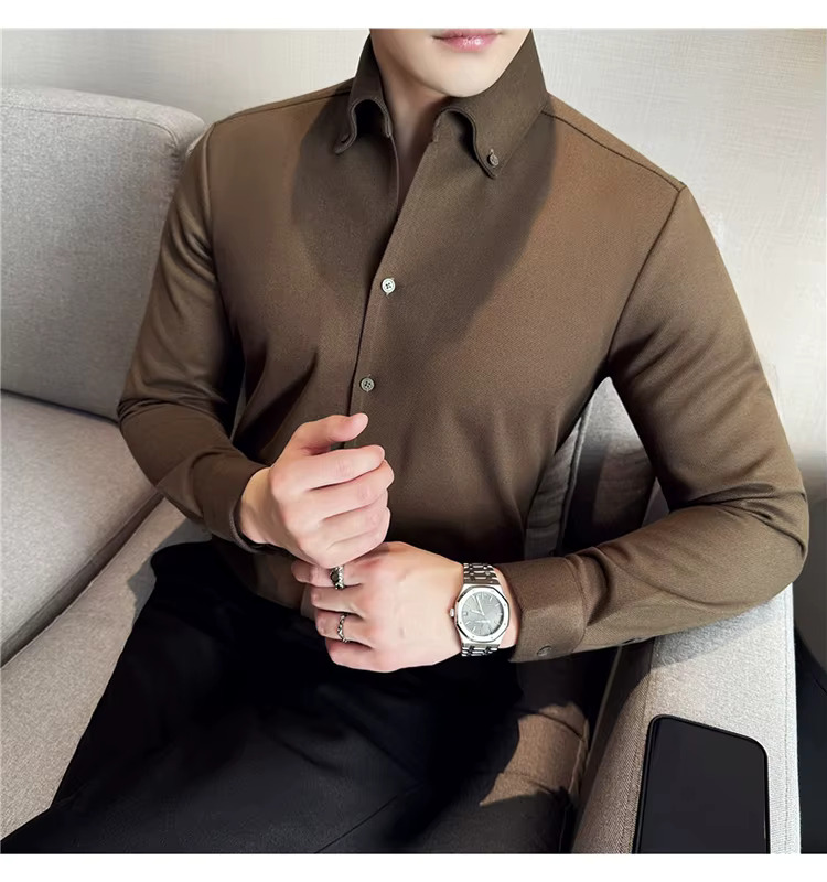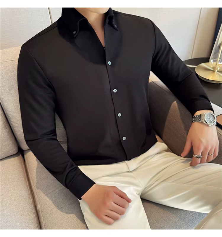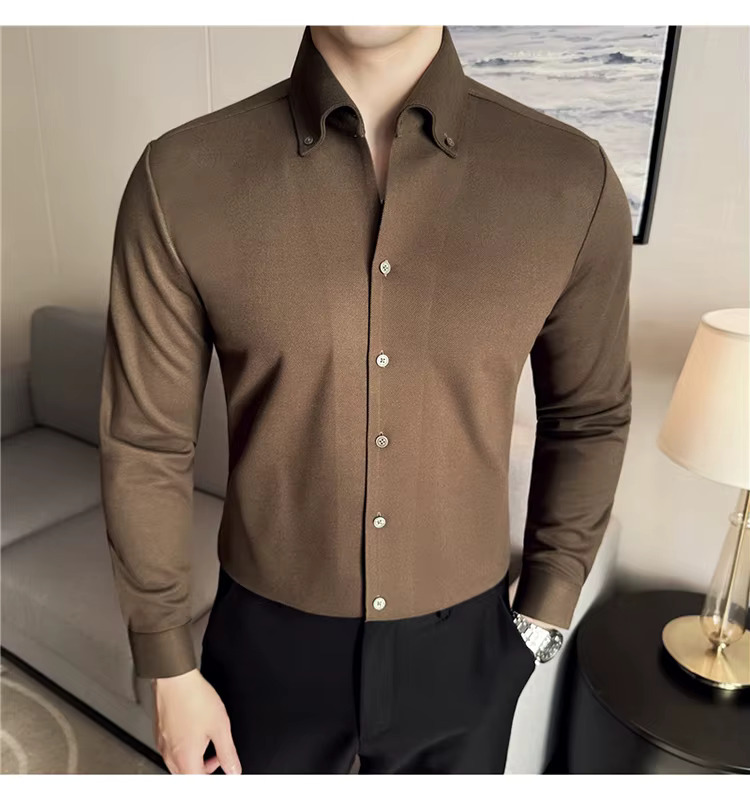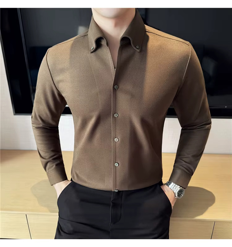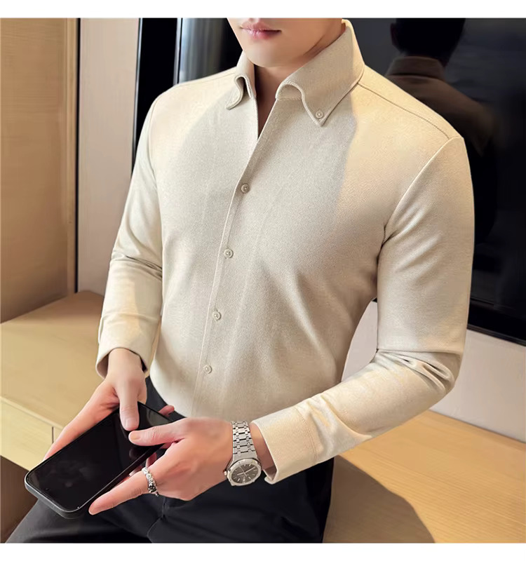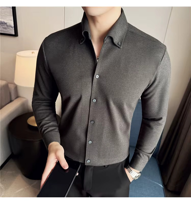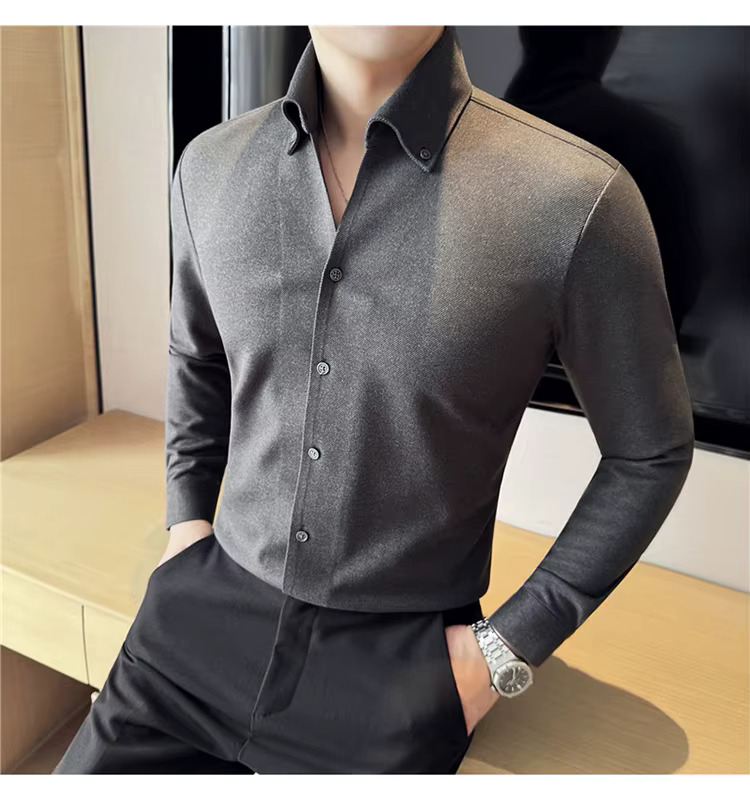High Grade Business Seamless Thick Wool Solid Casual Shirt