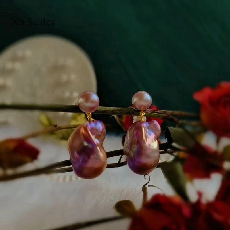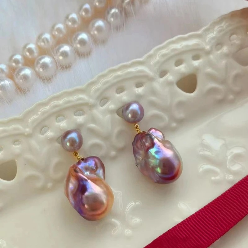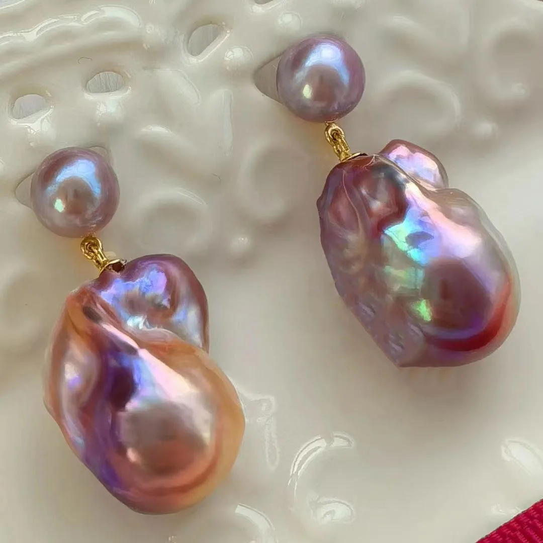 High Quality Natural Color Heteromorphic Pearl Aurora Oil Painting Baroque Unique and Beautiful  Earrings