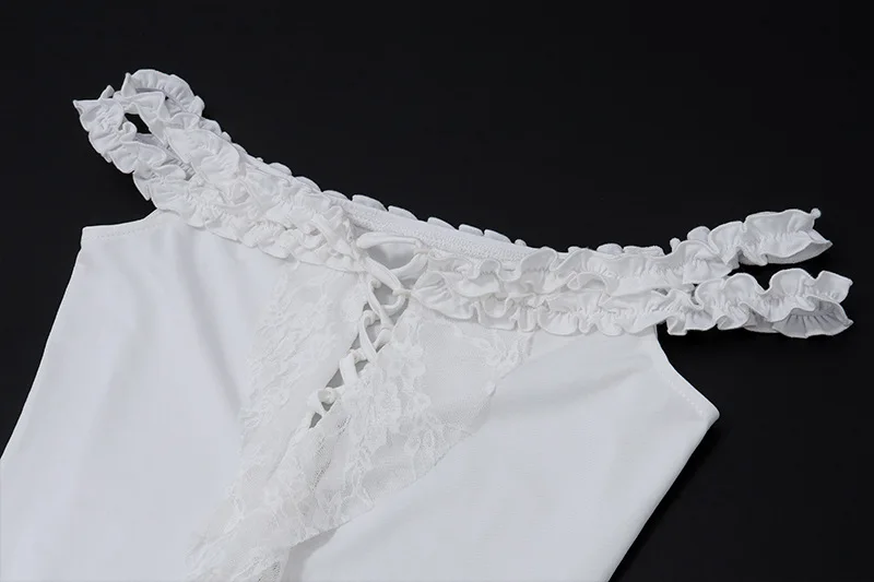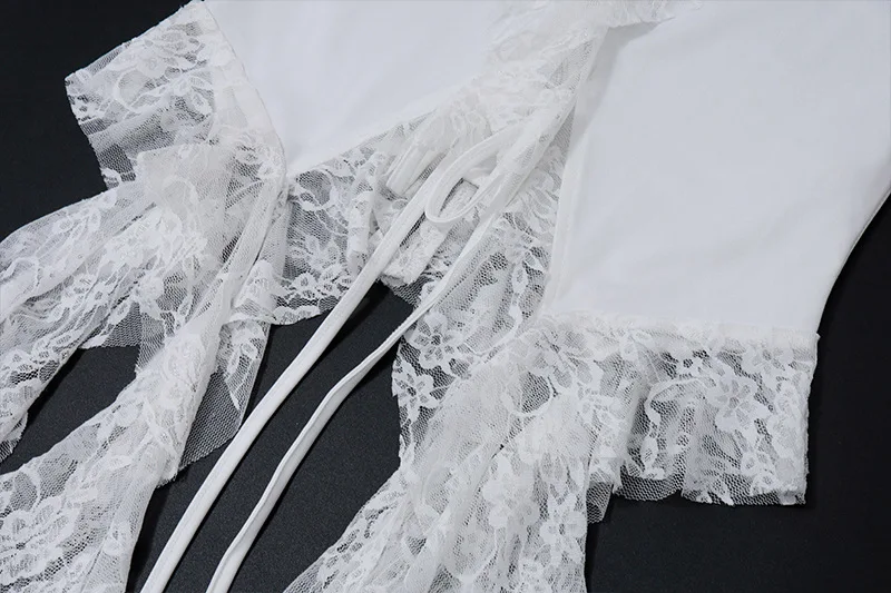 Hollow Out Lace Crop Top Off Shoulder Slim Tank Tops Lace-up T-shirts