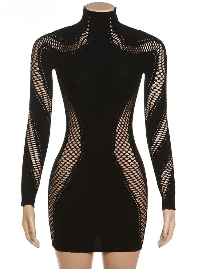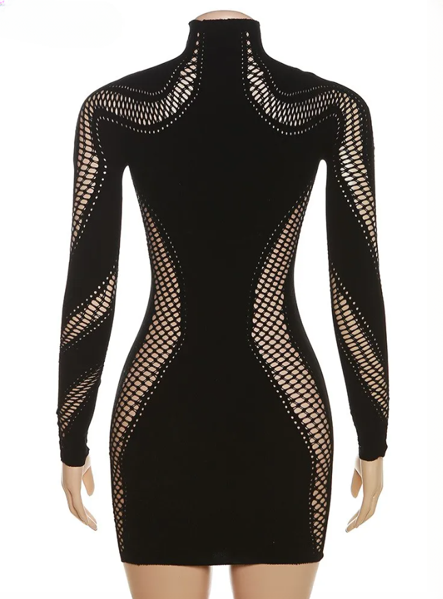 Hollow Stretch Skinny Solid Nightclub Party Bodycon Mini Dress