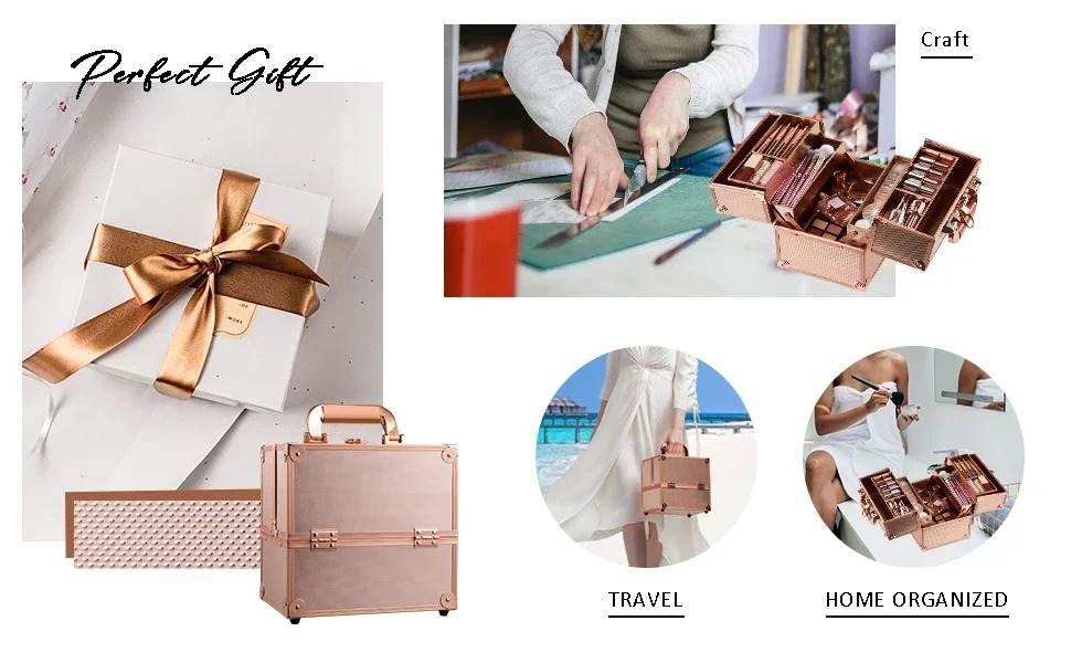 Jewelry Nail Manicure Beauty Portable Travel Alloy Cosmetics Makeup Case Storage Organizer Box