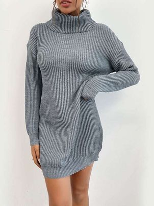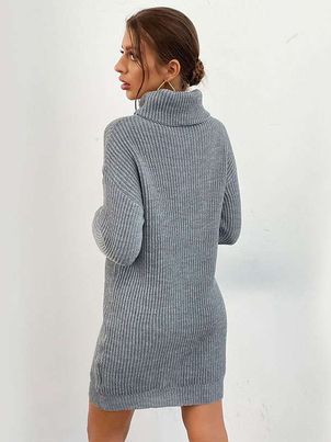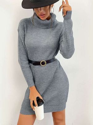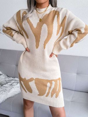 Knitted Dress For Women Pretty Long Sleeves Turndown Collar