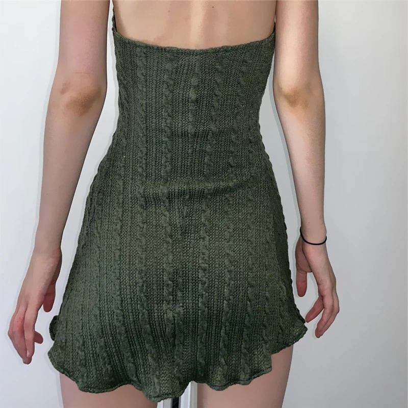Knitted Fairy Grunge Green Folds Gothic Retro Backless A-Line Mini Dresses
