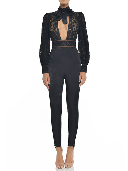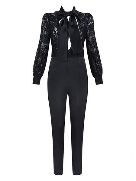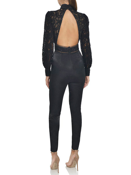 Lace Backless Cut Out Bow Tie Long Sleeve Sexy Going Out Wear