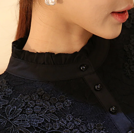 Lace Embroidery Black Lace Primer Long Sleeves Shirt