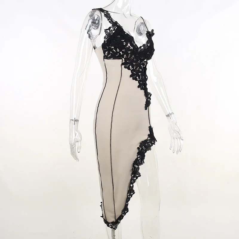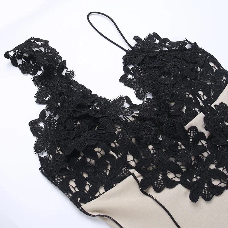 Be the first to review “Lace High Split Robe Spaghetti Strap Sleeveless Deep V Neck Party Dress”