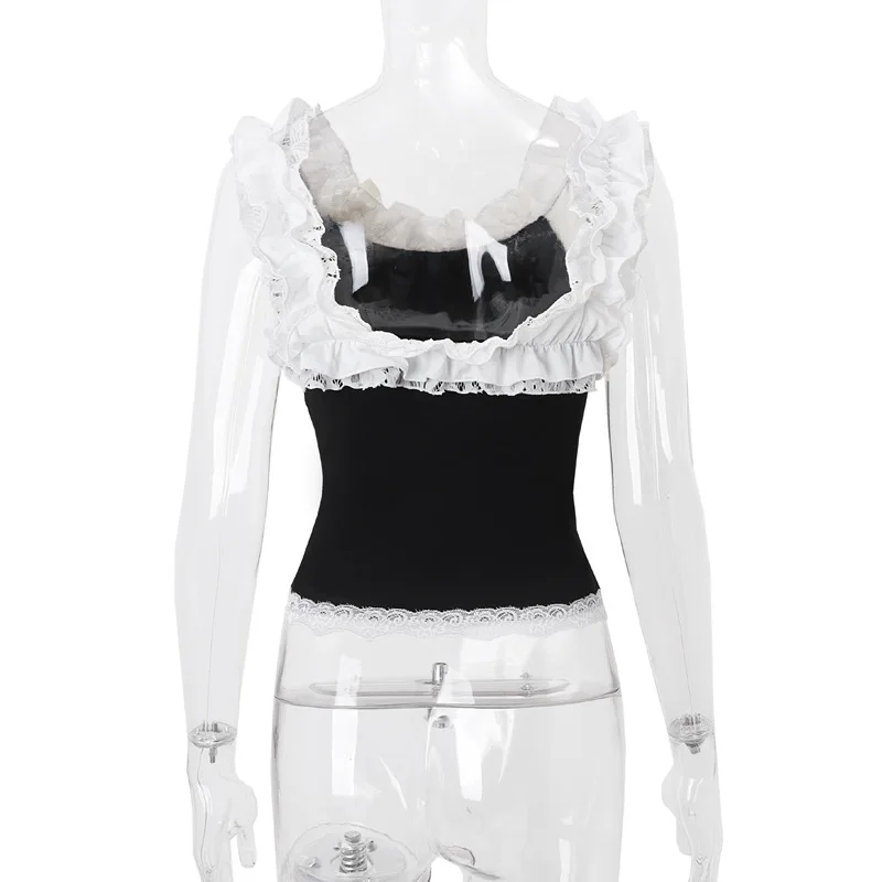 Lace Off-Shoulder Top Strapless Splice Slim Short T Shirt