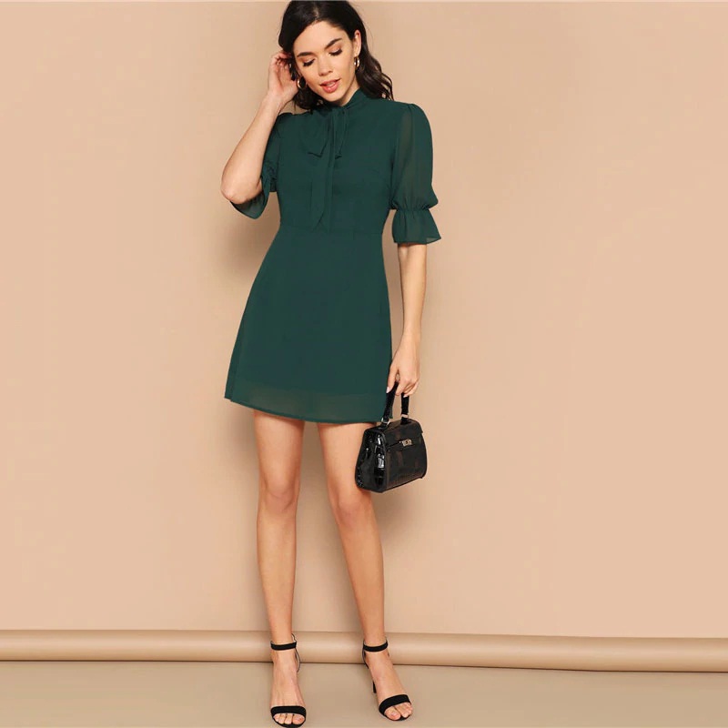 Be the first to review “Lady Tie Neck Stand Collar Flounce Sleeve Mini Dress”