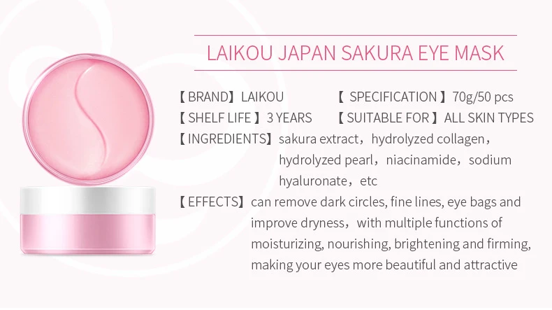 Japan SAKURA eye mask is rich in sakura extract and various moisturizing ingredients, effectively improve the skin around the eyes, such as dark circles, fine lines, bags and dryness.It has multiple functions of moisturizing, nourishing, brightening and firming, making the skin around your eyes watery and smooth. It will make your eyes more beautiful and attractive.