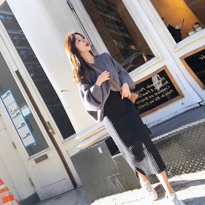 Be the first to review “Lantern Sleeve Pullovers & Side Split Skirt Knitted Set”