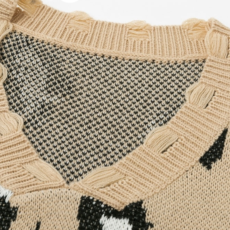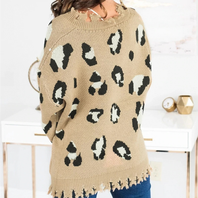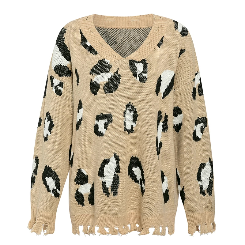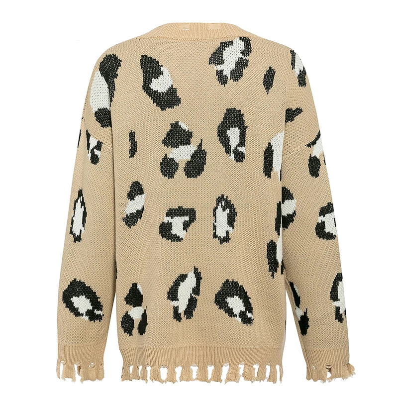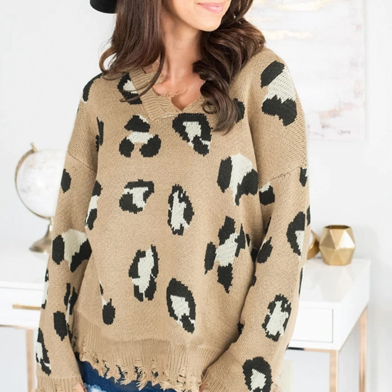 Be the first to review “Leopard Print Bat Sleeve V-Neck Tassel Pullover Sweater”