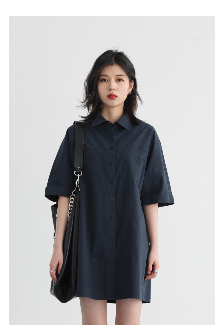 Be the first to review “Solid Single Breasted Casual Loose Short Sleeve Shirt Dress”
