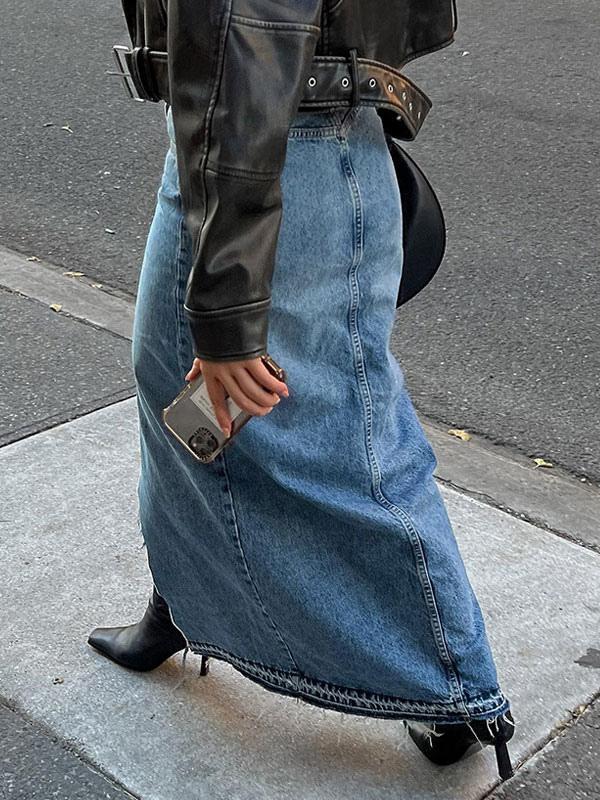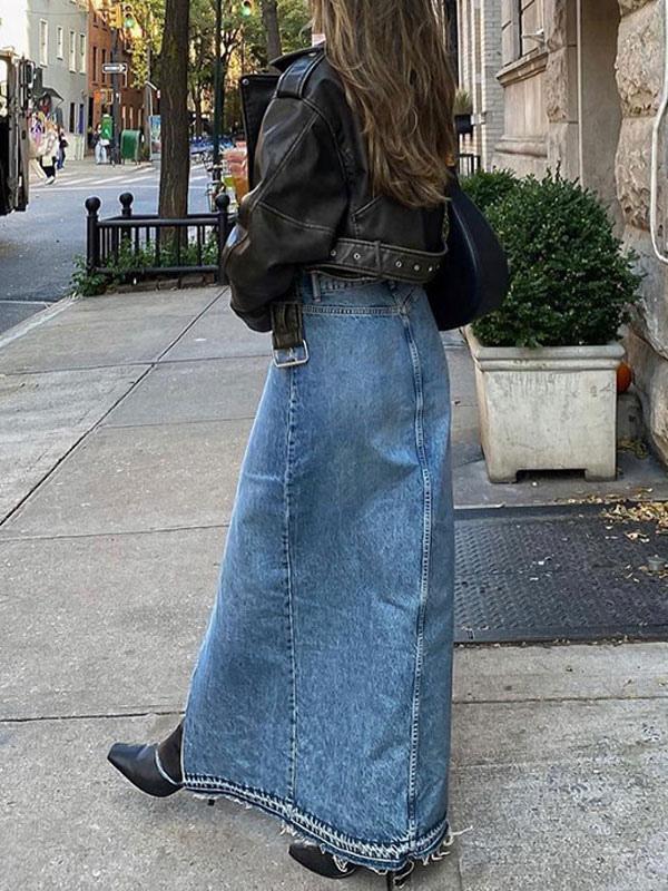 Long Fashion Skirt Fringe Denim Long Street Wear Bottoms