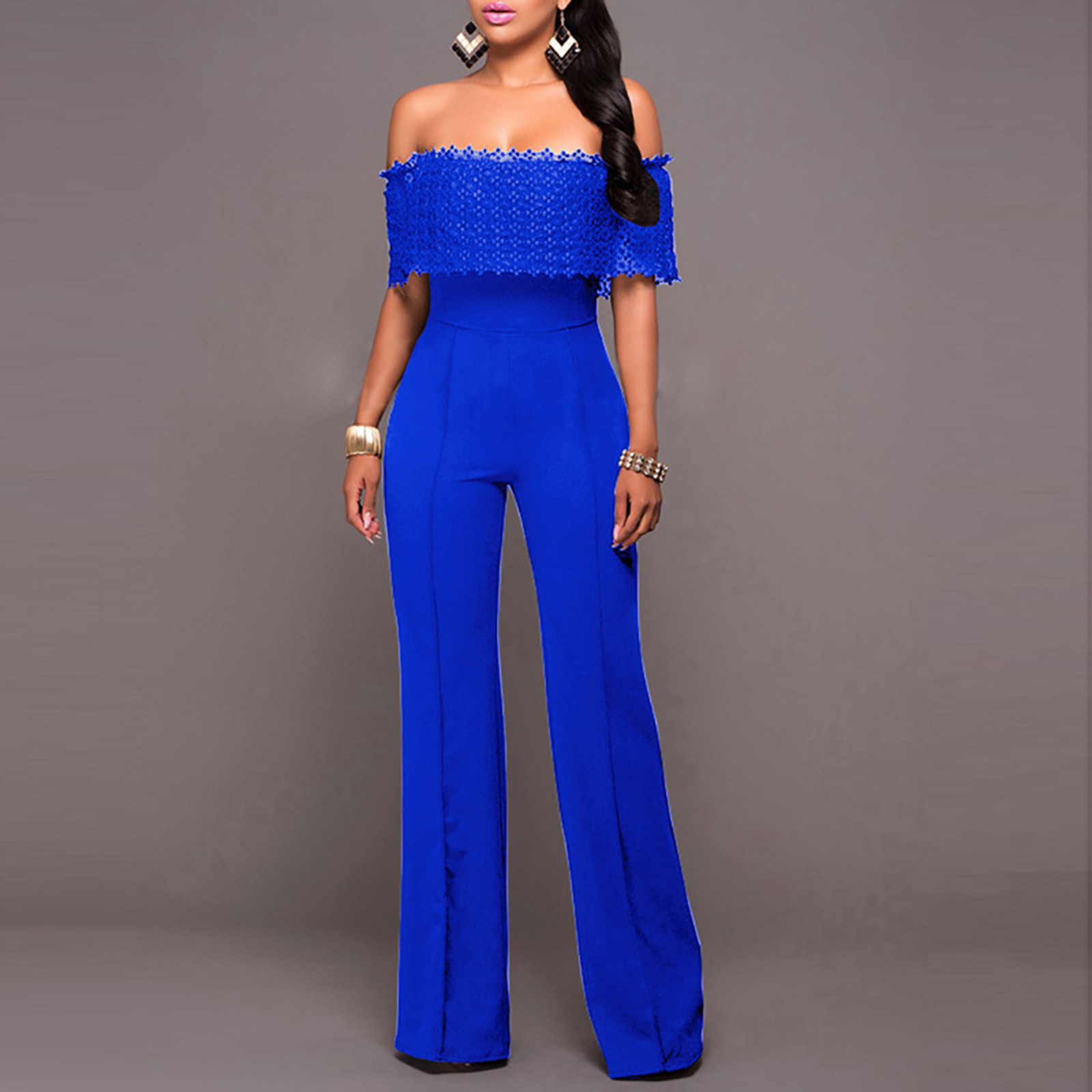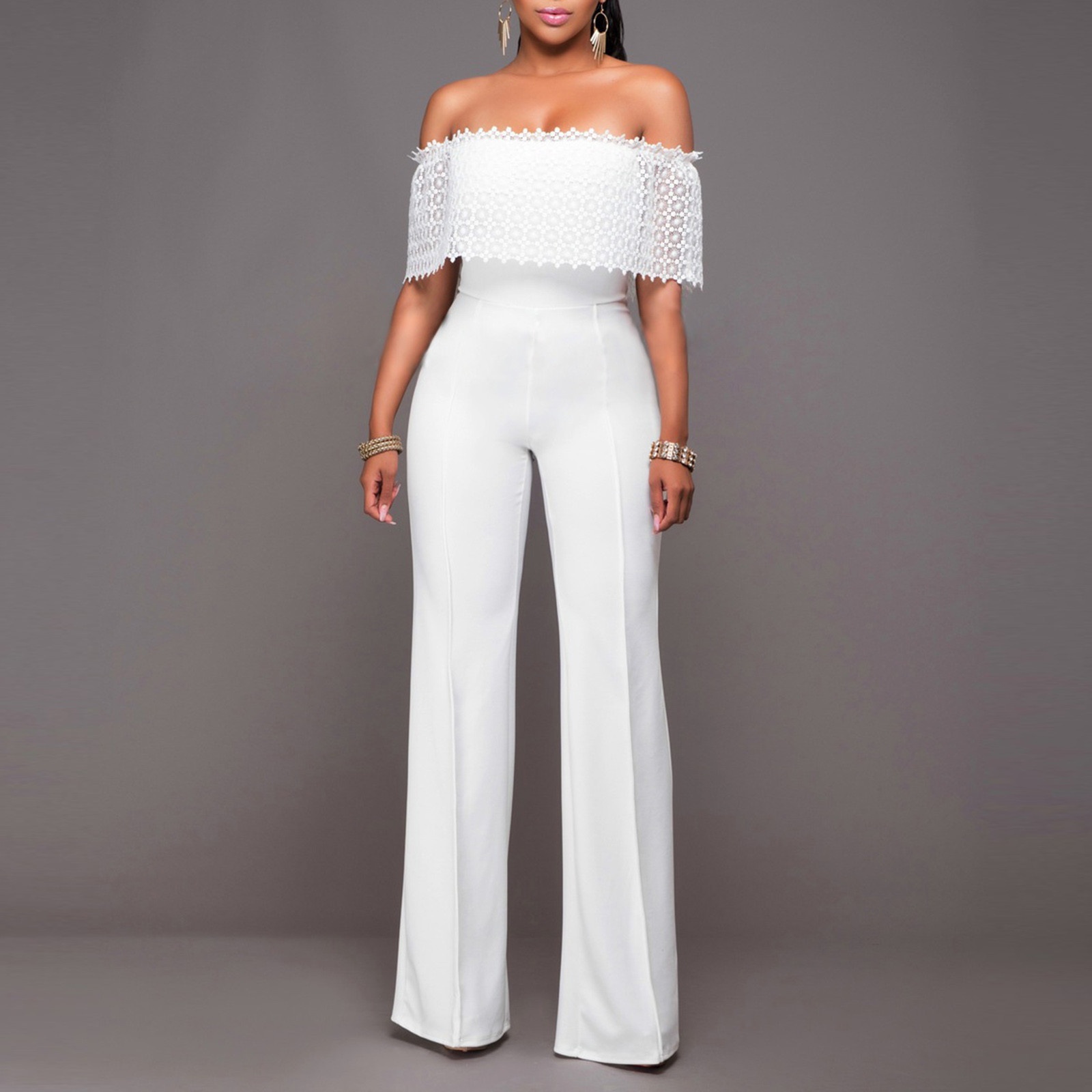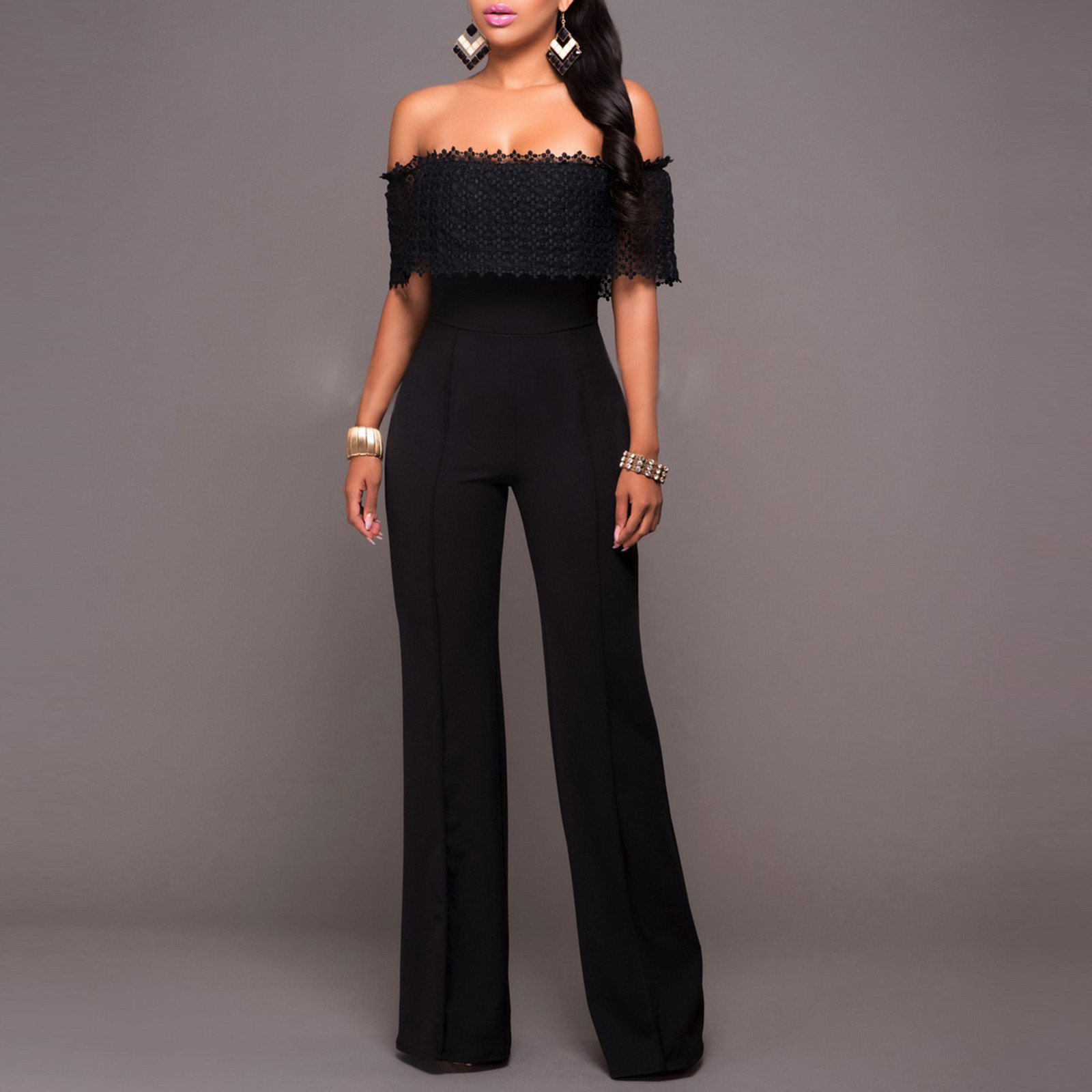 Sexy Trouser Suit Off Shoulder Lace Zipper Jumpsuit