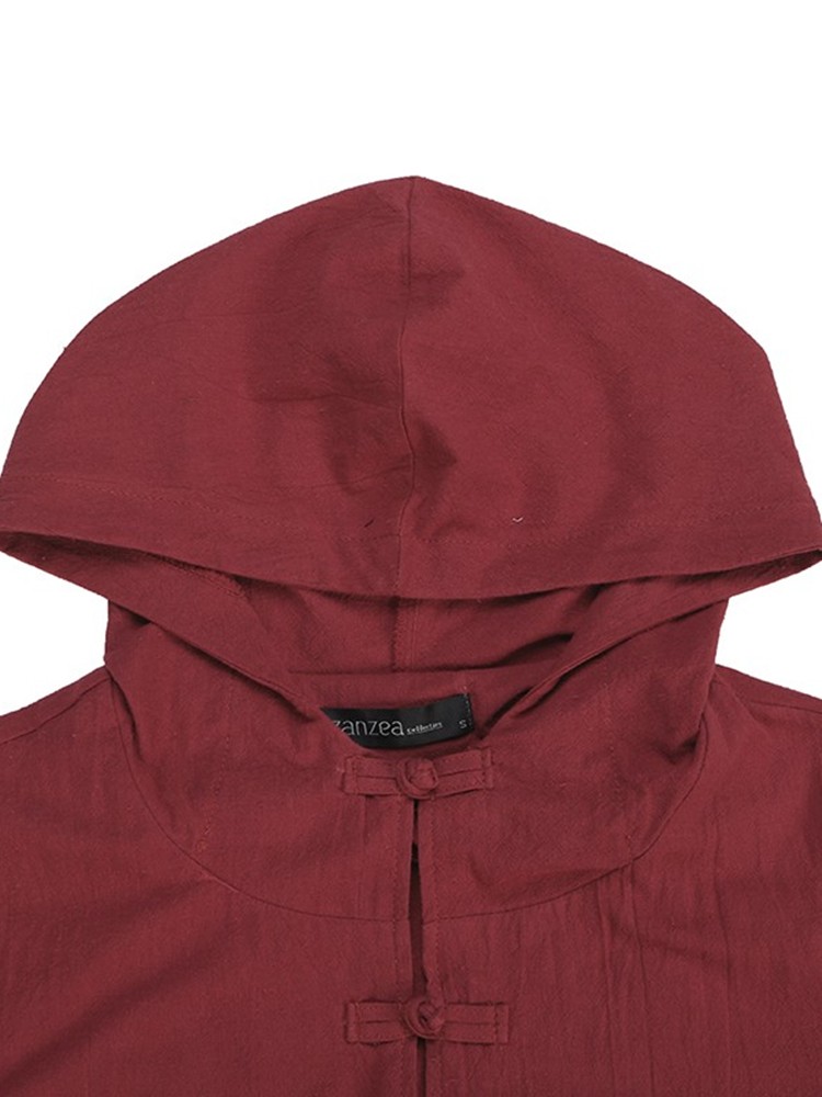 Long Sleeve Plate Buckles Pocket Hooded Maxi Dress