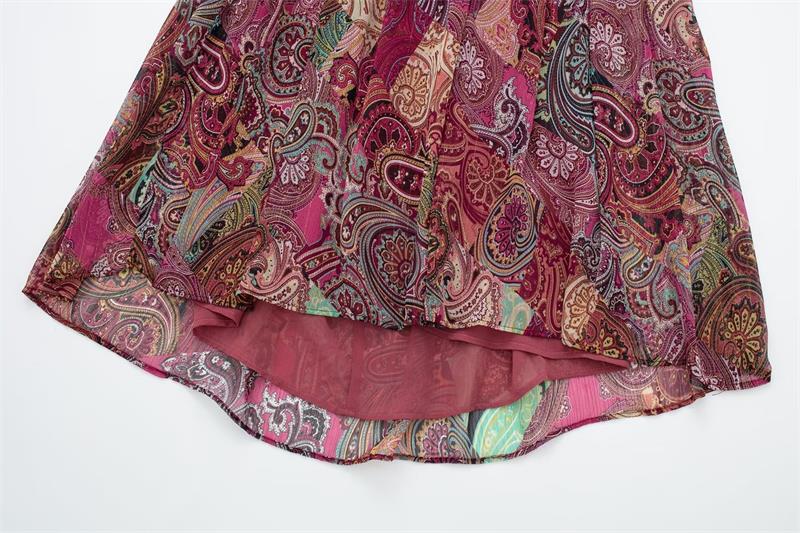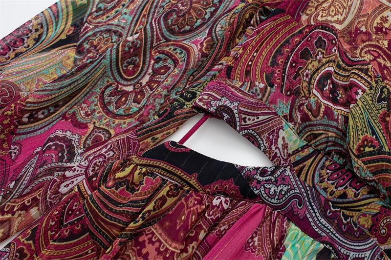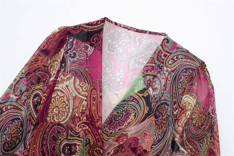 Printed Midi Deep V-Neck Long Lantern Sleeve Maxi Dresses