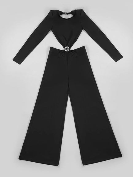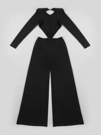 Long Sleeve High Waist Hollow Cut Slim Jumpsuit