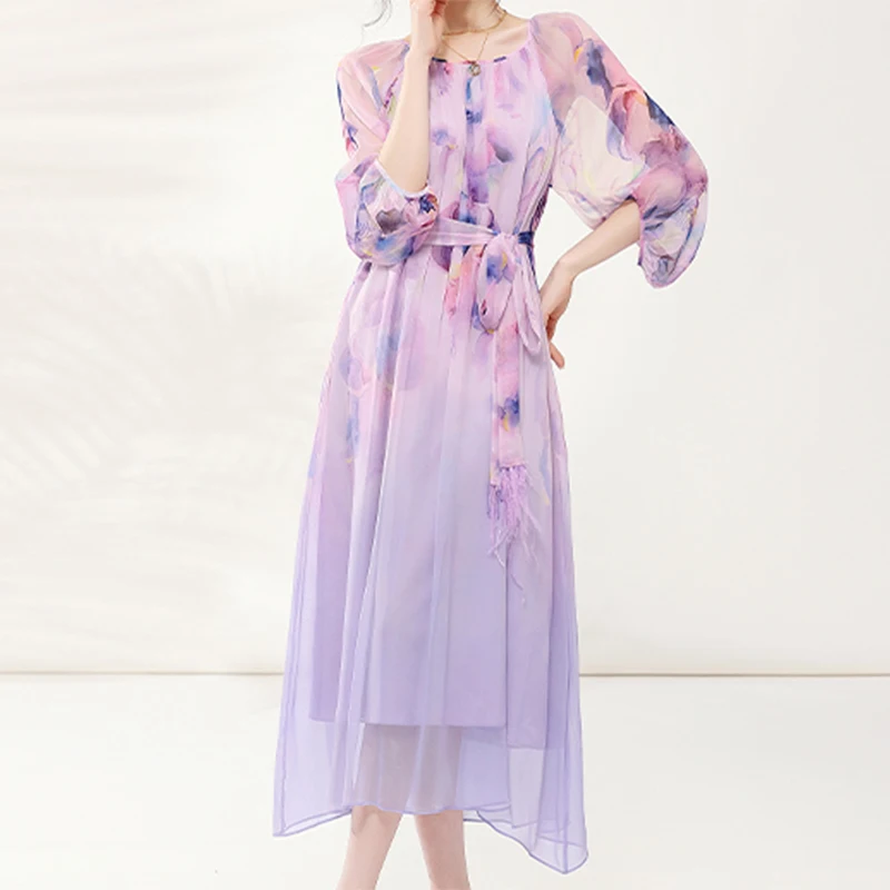 Loose Chiffon Dress Natural Silk Elegant A-line Fairy Vestidos
