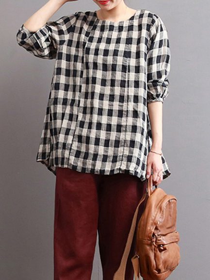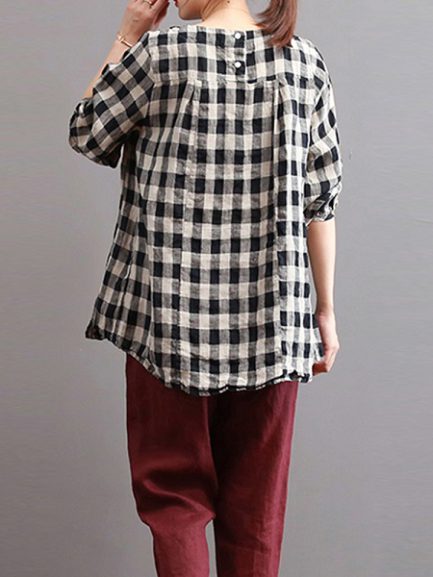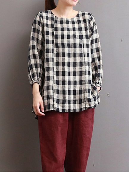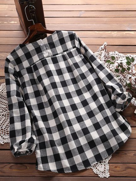 Be the first to review “Loose Plaid Long Sleeve Women Blouse”