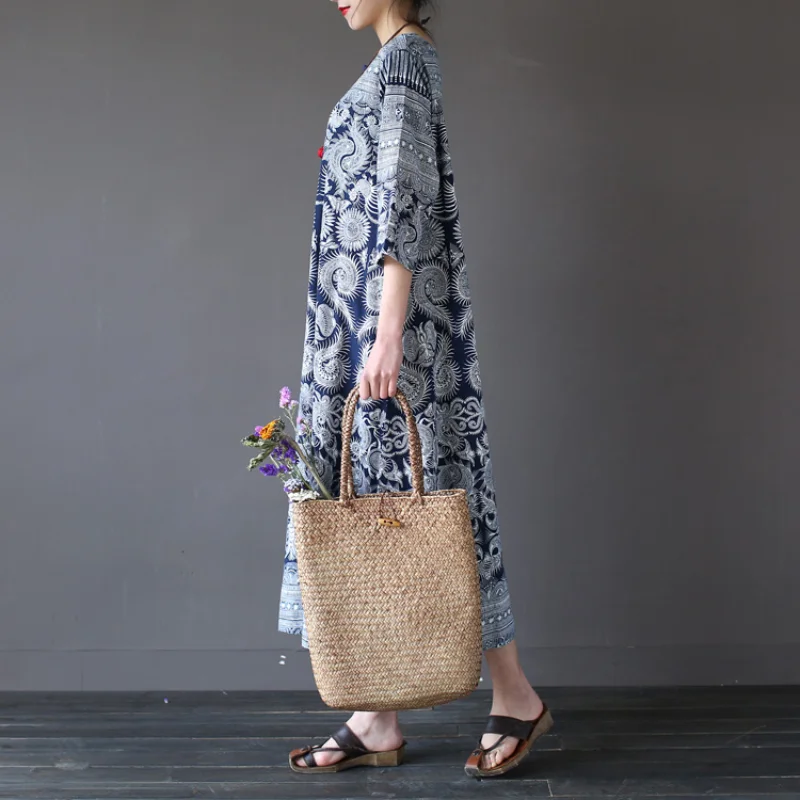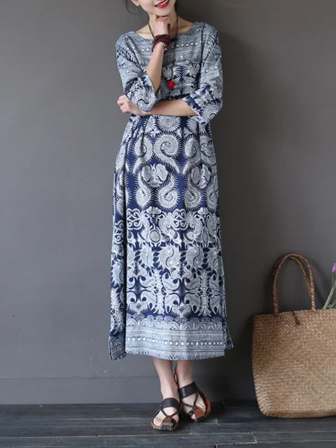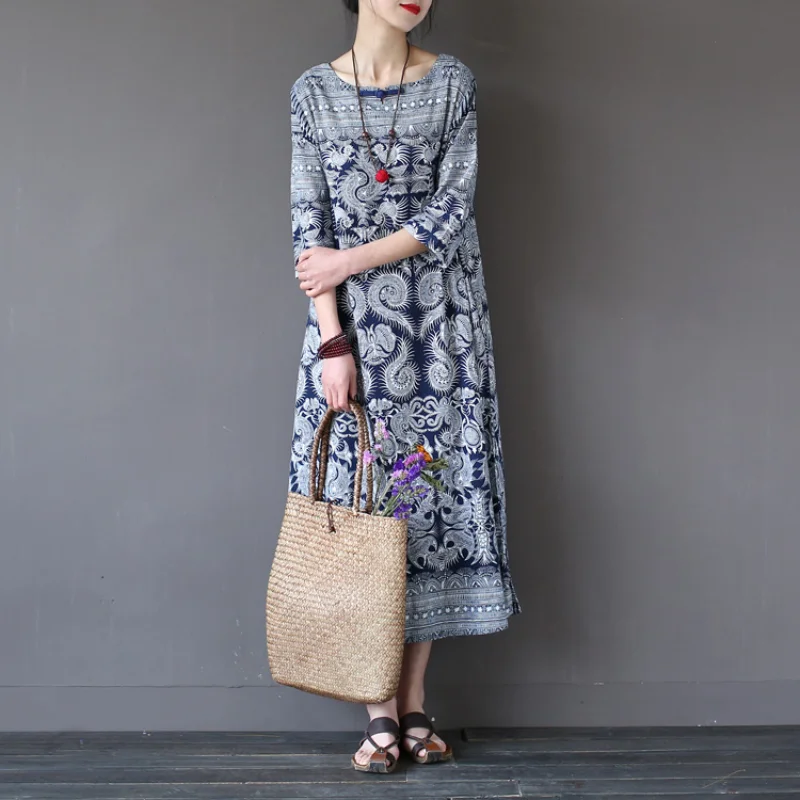 Vintage Print Literature and Art National Style Pottery Loose Casual Dress