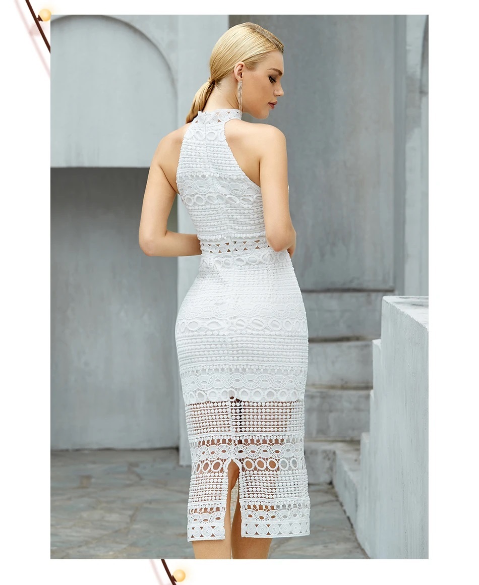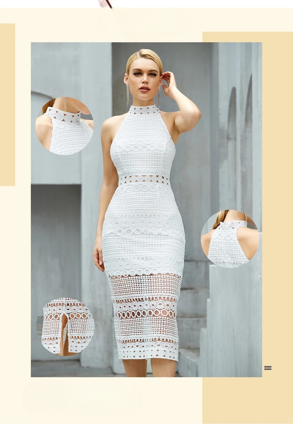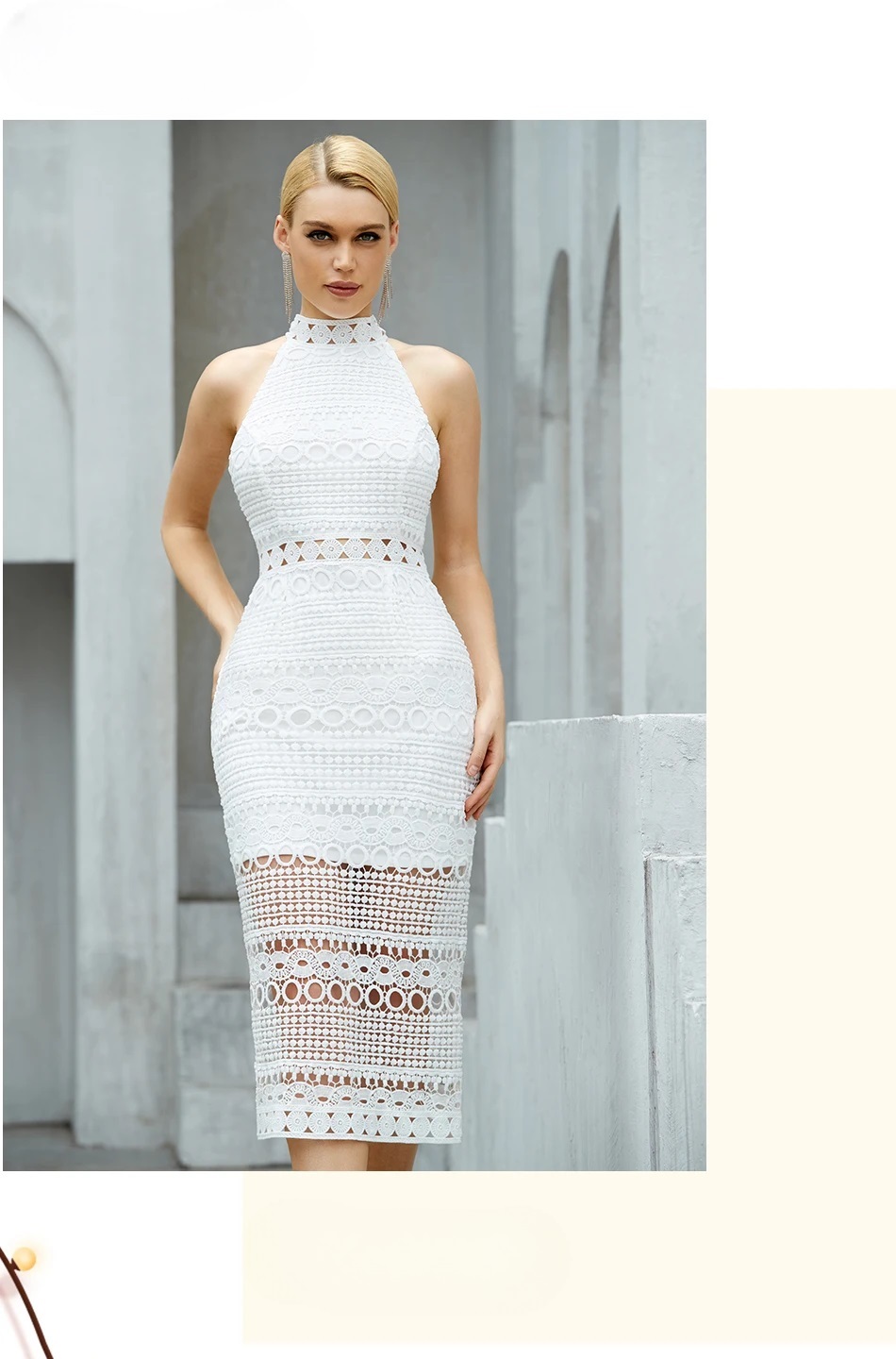 Luxurious Dress with Lace Accents – Sleeveless Halter Neck Design